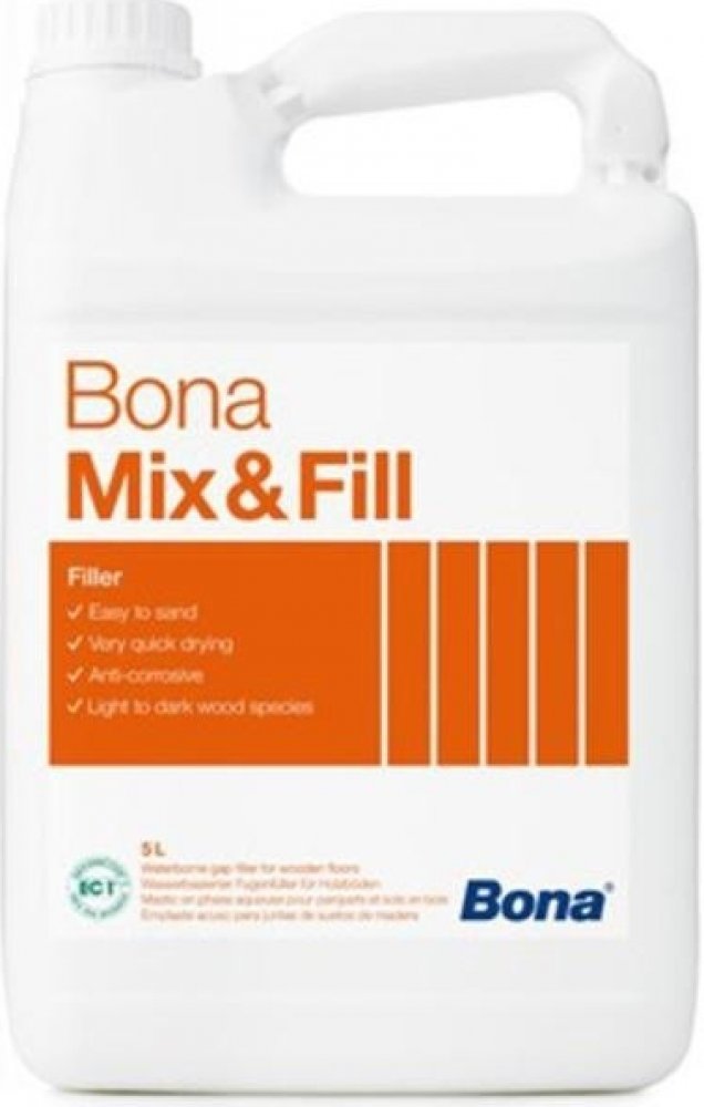 Bona Mix & Fill je spárový tmel založený na vodní bázi. Slouží k rychlému a účinnému vyplnění spár a prohlubní na dřevěné podlaze. Je možné použít na většinu druhů dřeva a lze použít na spáry do šířky 2 mm a jiné menší defekty na podlahách. Rovněž lze použít na všechny lakové a olejové systémy Bona. Tento produkt zajišťuje vysokovu úroveň ochrany zdraví a životního prostředí (Certifikace EC1RPLUS)...