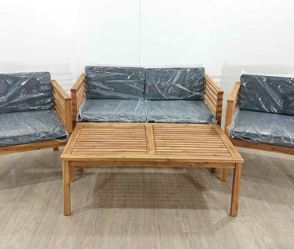 Zahradní dřevěný nábytek v moderním provedení vhodný na větší balkón nebo do zahrady či pergoly. Udělejte si pohodlí, posaďte se do křesílka nebo na sedačku a na stolek si odložte oblíbenou knihu, kávu i sklenku vína. Tento set venkovního nábytku je vhodný do interiéru i exteriéru. Polstry mají potah na zip.