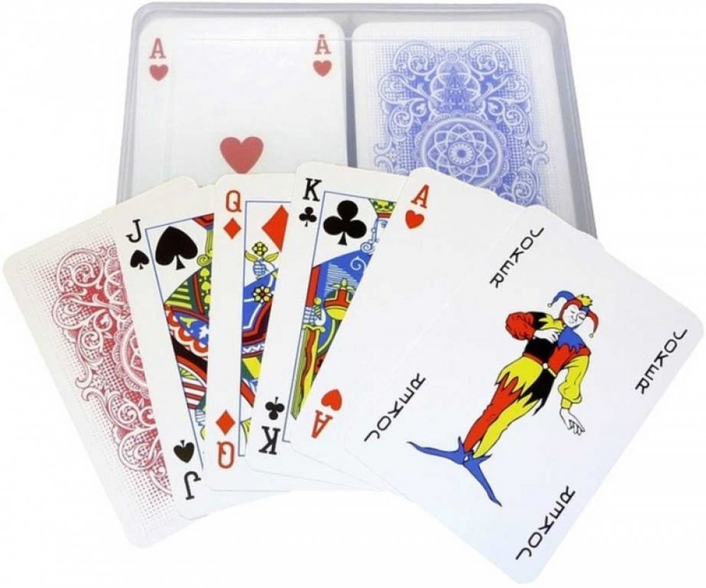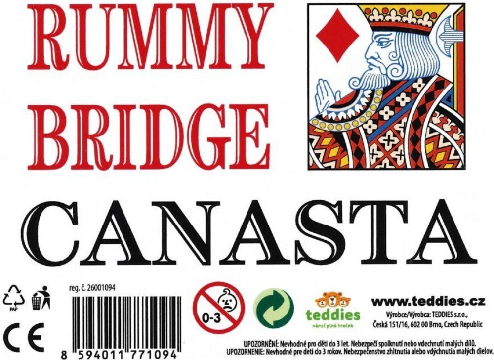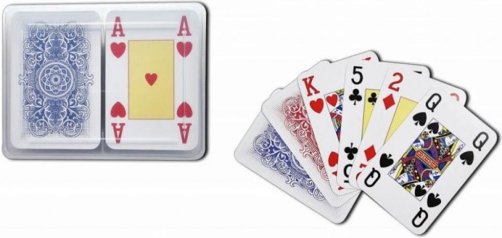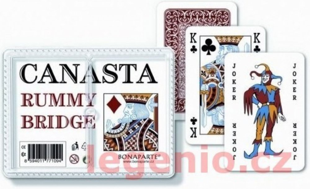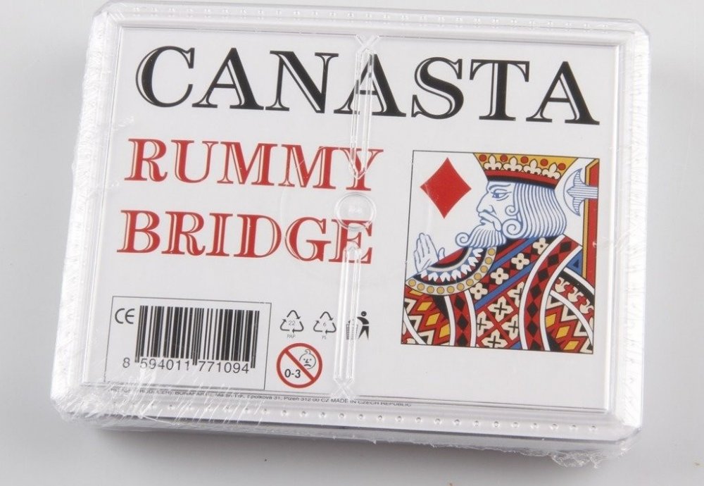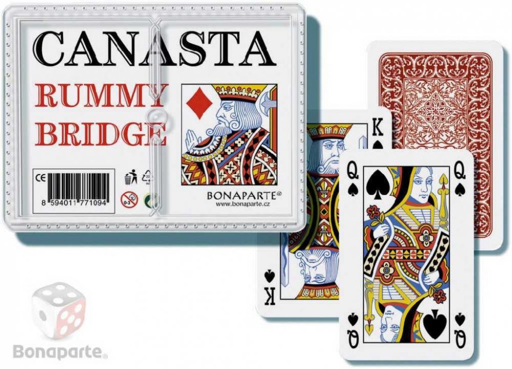 Canasta - Ideální počet hráčů pro tuto hru jsou čtyři. Hráči vždy sedí proti sobě a po několika kolech vítězí ten, kdo dosáhne 10 000 bodů či více. Zpříjemněte si deštivé dny s přáteli nebo rodinou s touto zábavnou karetní hrou, která Vám do chmurného počasí vnese trochu rozveselení. Hrací karty Canasta jsou originální dárek pro každého karetního hráče