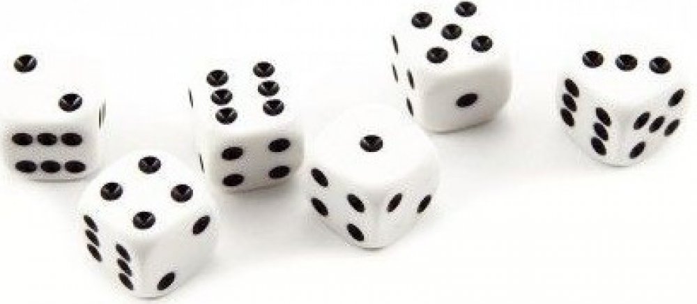 Hrací náhradní kostky v klasické barvě bílo-černá přímo vybízí ke hře. Sada šesti kostek v krabičce.
