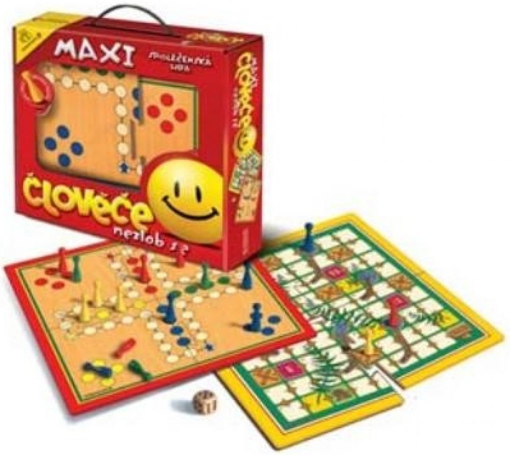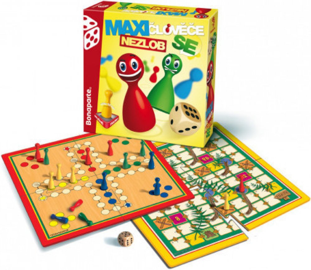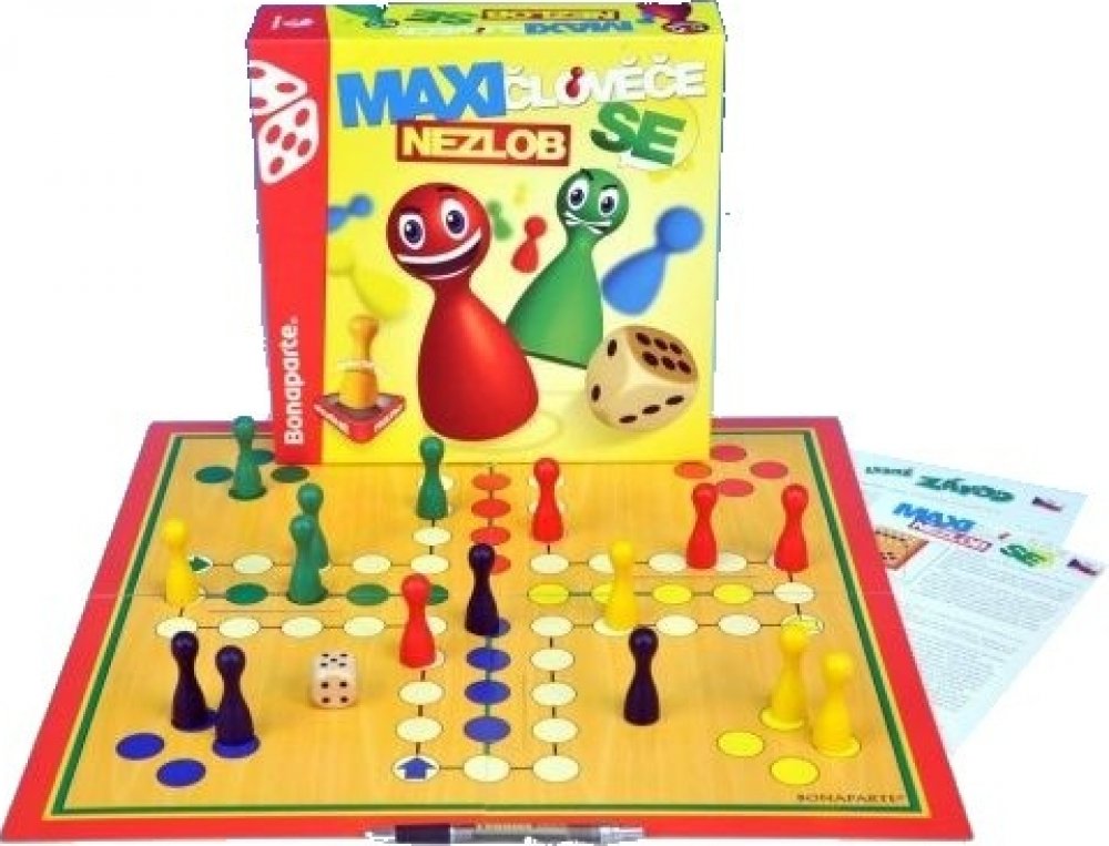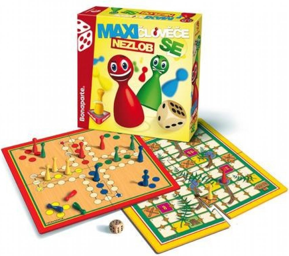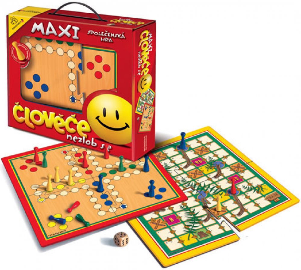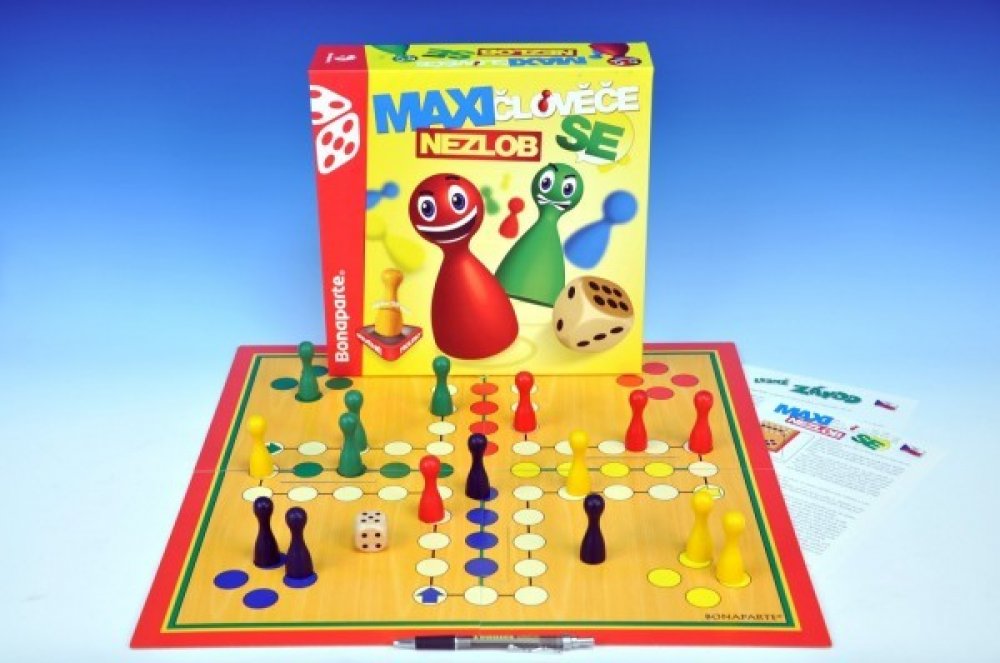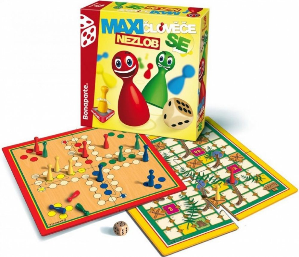 Člověče nezlob se a Lesní závod. Dvě hry v extra velkém provedení, dřevěné figurky výška 5 cm, velká dřevěná kostka. Figurky se výborně drží jak těm nejmenším dětem, tak seniorům. Hra obsahuje: oboustranný herní plán, 12 dřevěných figurek, dřevěnou hrací kostku, návod Rozměr balení: 30 x 30 x 8 cm Vhodné od 3 let