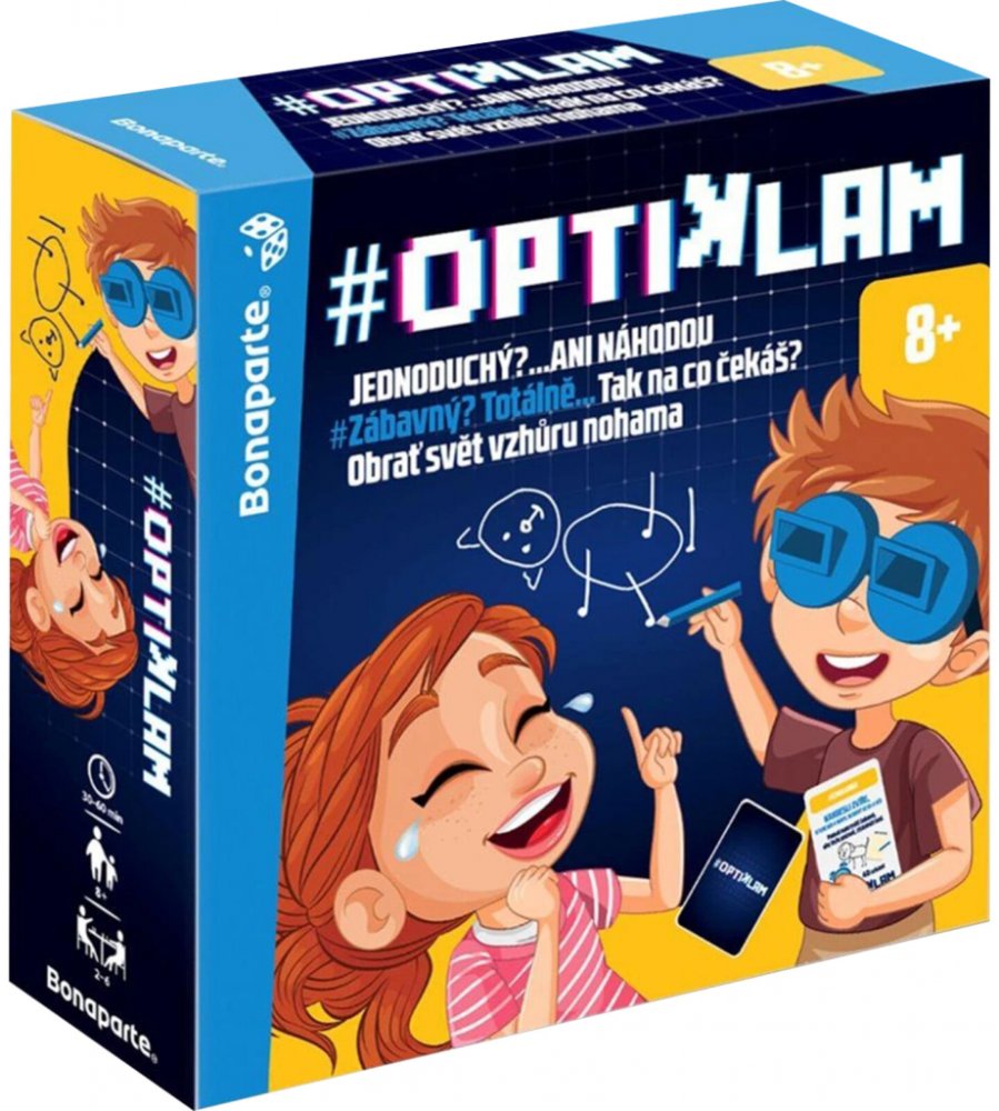 Popis : "#OPTIKLAM je zábavná společenská hra pro děti od 8 let, která obrací svět doslova vzhůru nohama! Tato „cool hra“ je postavená na optickém klamu pomocí speciálních brýlí, které převrací vidění naruby – co je dole, vypadá nahoře, a co je vlevo, vypadá vpravo. Výsledek? Smích, nečekané chyby a výzvy, které zamotají hlavu dětem i dospělým. Rozvíjí koordinaci oka a ruky za netradičních podmíne...