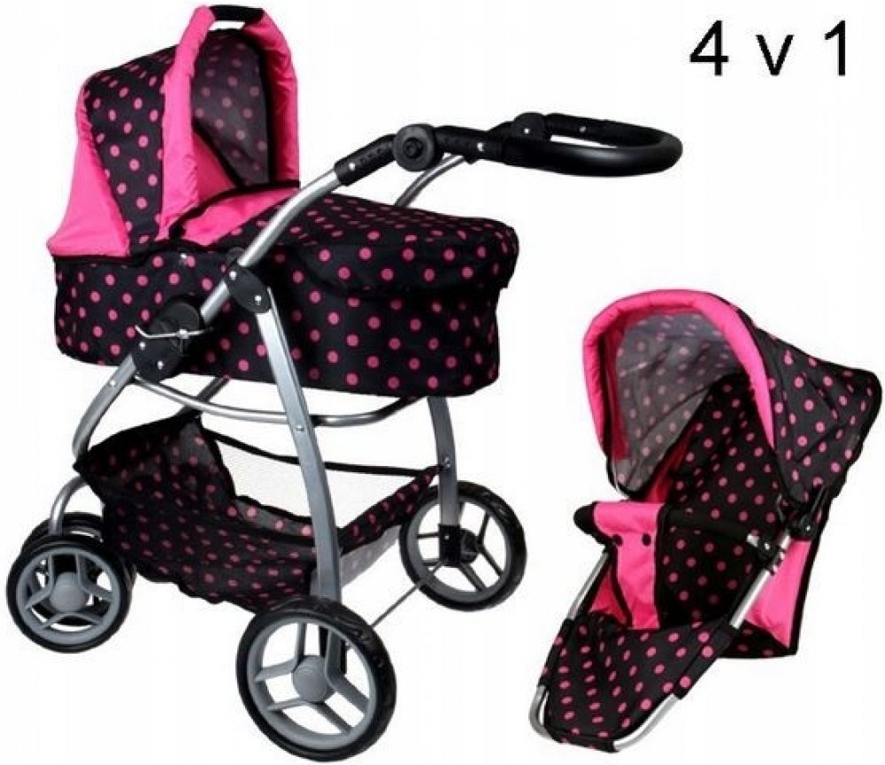 Menší kočárek pro panenky má kvalitní podvozek v moderním designu se zatáčecími předními kolečky. Rukojeť je nastavitelná dle výšky Vašeho dítěte v rozmezí 53 až 76 cm od země. Rozměry kočárku pro panenky jsou 72 x 42 x 75cm (délka x šířka x výška). Velikost vnitřního prostoru kočárku je 45x23cm (tzn. do kočárku se vejde panenka max. 38 cm velká). Funkce a možnosti kočárku: 1. Přenosnou tašku (lůž...