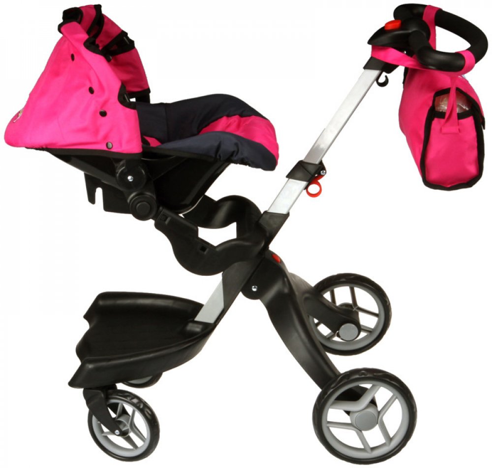 Menší kočárek pro panenky má kvalitní podvozek v moderním designu se zatáčecími předními kolečky. Rukojeť je nastavitelná dle výšky Vašeho dítěte v rozmezí 53 až 76 cm od země. Rozměry kočárku pro panenky jsou 72 x 42 x 75cm (délka x šířka x výška). Velikost vnitřního prostoru kočárku je 45x23cm (tzn. do kočárku se vejde panenka max. 38 cm velká). Funkce a možnosti kočárku: 1. Přenosnou tašku (lůžko kočárku) lze z kočárku odejmout a vrátit zpět a to proti směru i po směru jízdy. Její polohu lze nastavit současným stlačením tlačítek po obou stranách přenosky do sedu nebo do lehu panenky. 2. Odejmout přenosku lze stlačením tlačítek v konstrukci kočárku. Přenoska má také pásy pro připoutání panenky. 3. Pro nastavení výšky rukojeti stačí odjistit červený kroužek směrem k sobě, nastavit rukojeť a opět zafixovat. 4. Samotnou horní část rukojeti lze také nastavovat po stlačení červeného tlačítka v horní části rukojeti. 5. Po stlačení červeného tlačítka v dolní části kočárku lze sklopit zadní kolečka směrem k předním. Uděláte tak z kočárku placičku vhodnou pro převoz například autem. Součástí balení je také taška na ukládání věcí bez kterých se panenka nebo holčička neobejdou (např. dudlík, plenky ) Výhradním dovozcem kočárků značky Boncare je firma BELLA NOVA, s.r.o.