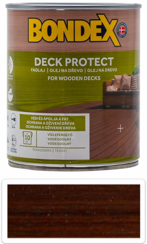 Speciální syntetický napouštěcí olej na alkydové bázi určený na ochranu a konzervaci povrchů dřeva v exteriéru. Má vysokou penetrační schopnost a vytváří vodoodpudivý film na povrchu dřeva. Poskytuje mimořádně dlouhou ochranu vůči povětrnostním vlivům a zvýrazňuje strukturu dřeva. Na všechny druhy měkkého a tvrdého (exotického) dřeva, především na terasy a dřevěné pochozí plochy v exteriéru. Primárně slouží k ochraně a zesílení kresby dřeva u domovního, ale i zahradního nábytku, zábradlí, dřevěných obložení apod.
