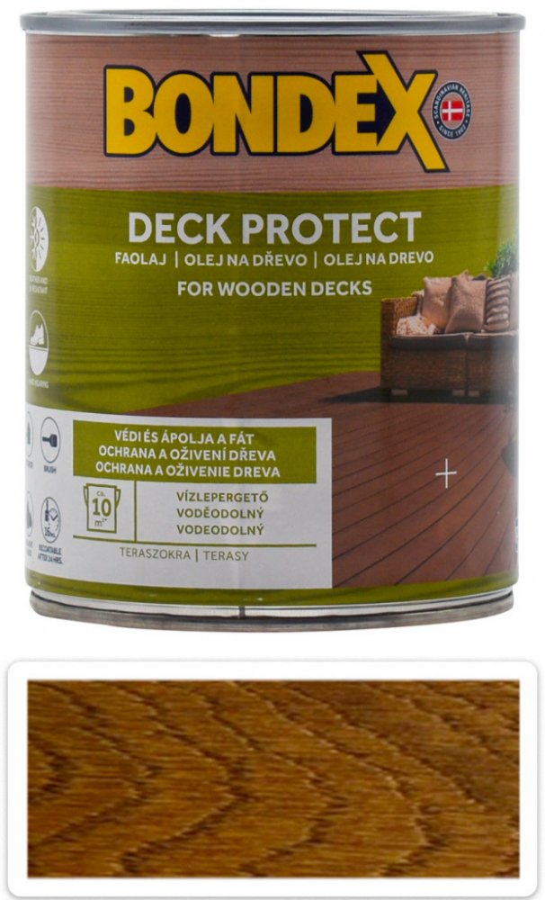 Speciální syntetický napouštěcí olej na alkydové bázi určený na ochranu a konzervaci povrchů dřeva v exteriéru. Má vysokou penetrační schopnost a vytváří vodoodpudivý film na povrchu dřeva. Poskytuje mimořádně dlouhou ochranu vůči povětrnostním vlivům a zvýrazňuje strukturu dřeva. Na všechny druhy měkkého a tvrdého (exotického) dřeva, především na terasy a dřevěné pochozí plochy v exteriéru. Primárně slouží k ochraně a zesílení kresby dřeva u domovního, ale i zahradního nábytku, zábradlí, dřevěných obložení apod.
