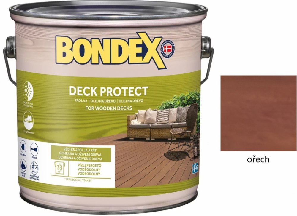 Speciální syntetický napouštěcí olej na alkydové bázi určený na ochranu a konzervaci povrchů dřeva v exteriéru. Má vysokou penetrační schopnost a vytváří vodoodpudivý film na povrchu dřeva. Poskytuje mimořádně dlouhou ochranu vůči povětrnostním vlivům a zvýrazňuje strukturu dřeva. Na všechny druhy měkkého a tvrdého (exotického) dřeva, především na terasy a dřevěné pochozí plochy v exteriéru. Primárně slouží k ochraně a zesílení kresby dřeva u domovního, ale i zahradního nábytku, zábradlí, dřevěných obložení apod.