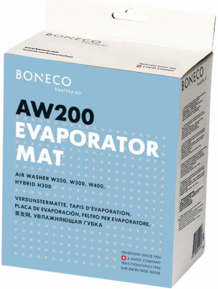 Filtrační vložka nasává vodu z nádržky zvlhčovače, která je následně pomoci ventilátoru vyfukována do místnosti v podobě zvlhčeného vzduchu.PraníPři silném znečištění, zavápnění nebo zápachu lze odpařovací rohož vyprat v pračce při teplotě 40 °C. Při praní používejte běžný prací prostředek. Rohož nesušte v sušičce na prádlo.Ruční čištěníDo teplé vody přidejte trochu čisticího prostředku a odpařovací rohož důkladně promačkejte, aby se do ní mohl dostat čisticí prostředek. Opakovaně vypláchněte v čisté, teplé vodě, dokud se nepřestane tvořit pěna.Průměrná životnost odpařovací rohože je 24 měsíců v závislosti na tvrdosti používané vody.Kompatibilní zvlhčovače vzduchuBoneco H300Boneco H320Boneco H400Boneco W200Boneco W300Boneco W400Tipy na bezpečné používáníPokud tento produkt budete používat k účelům zamýšleným výrobcem, nejsou nám známá žádná rizika pramenící z jeho používání.