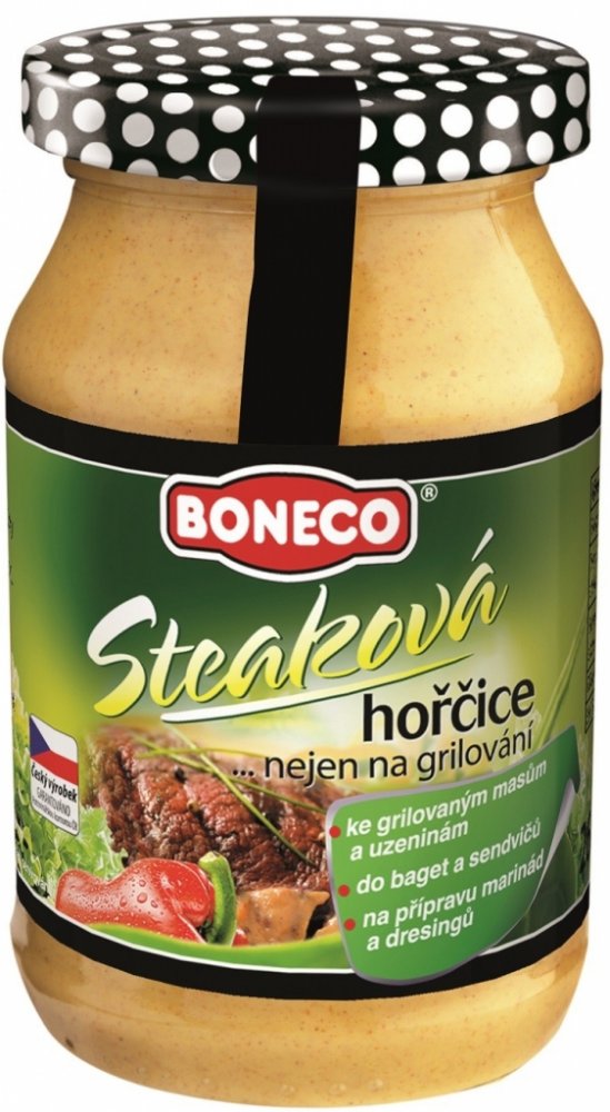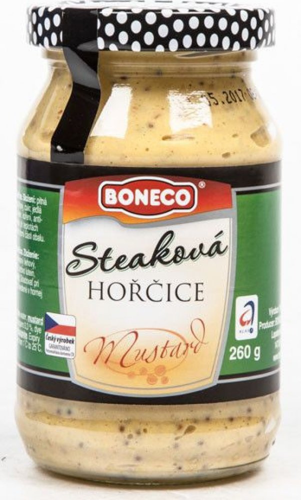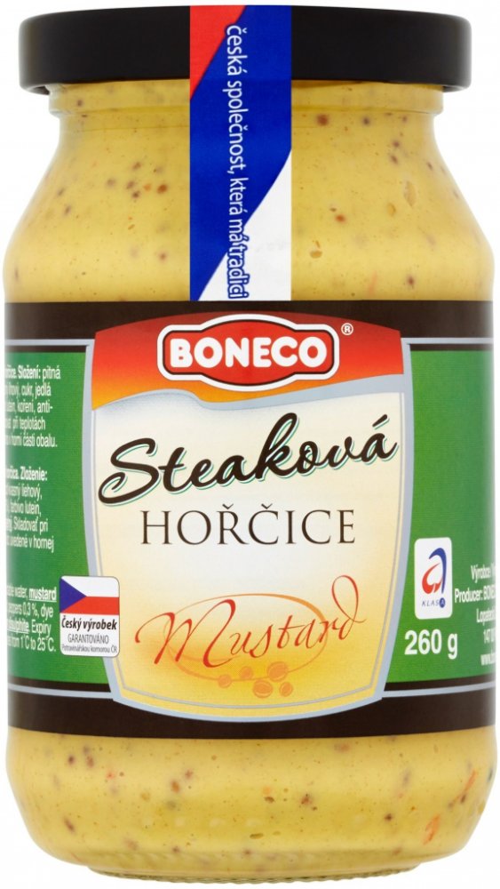 ZÁKONNÝ NÁZEV POTRAVINYSpeciální hořčiceSLOŽENÍpitná voda, semínko HOŘČICE, ocet kvasný lihový, cukr, jedlá sůl, paprikové floky 0,3%, barvivo lutein, koření, antioxidant DISIŘIČITAN DRASELNÝALERGENYOxid siřičitý a siřičitany,Hořčice a výrobky z níVÝŽIVOVÉ ÚDAJE/JEDNOTKAna 100 g Energetická hodnota 670 kJ/ 160 kcal Tuky 7,8 g z toho nasytené MK 1,1 g Sacharidy 14,7 g z toho cukor 11,4 g bi