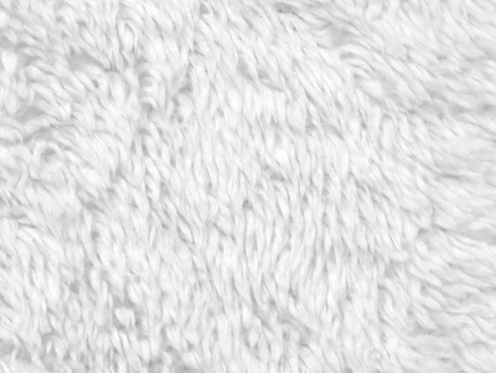 Dekorační plyš TERAN se strukturou vlasu beránek, v bílé barvě, v metráži o šířce 150 cm.