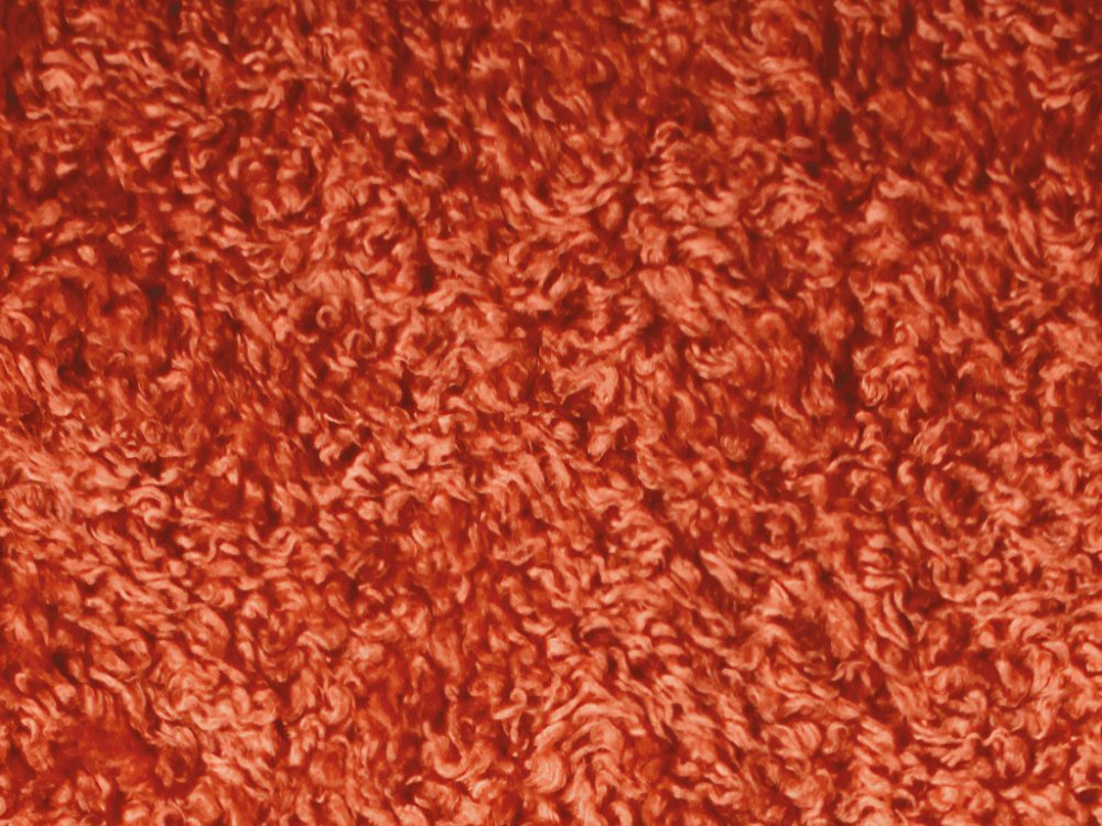 Dekorační plyš TERAN se strukturou vlasu beránek, v terakotové barvě, v metráži o šířce 150 cm.