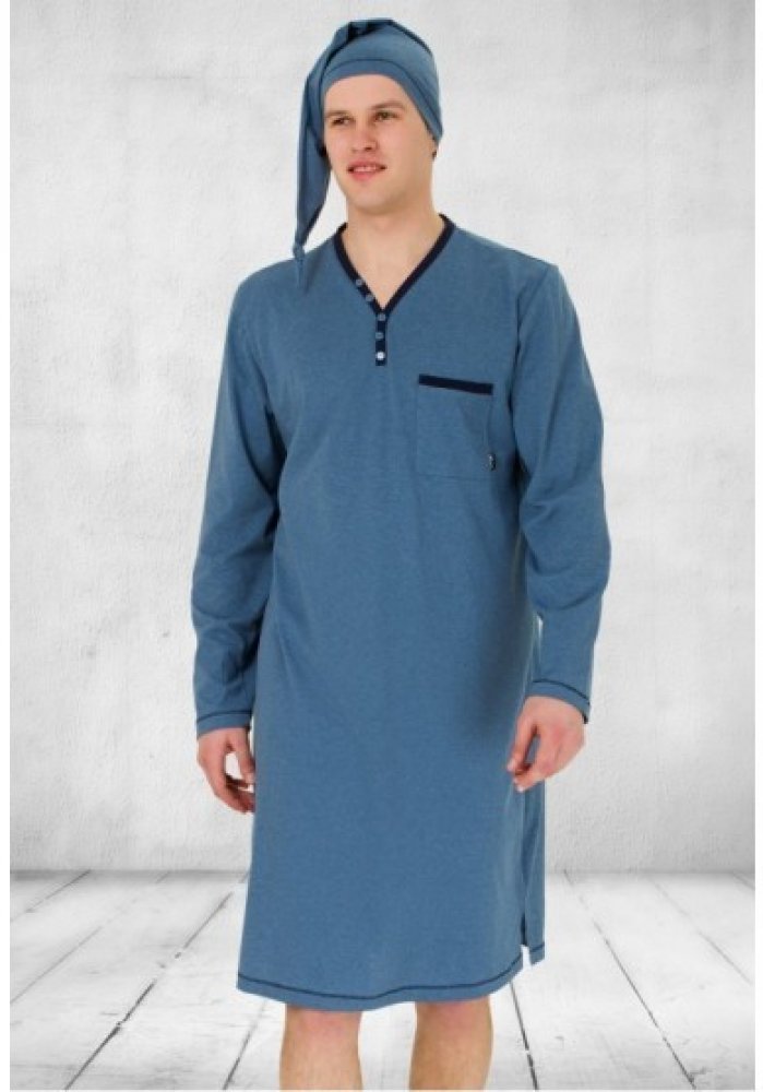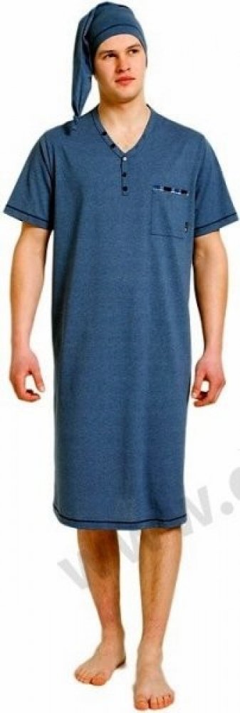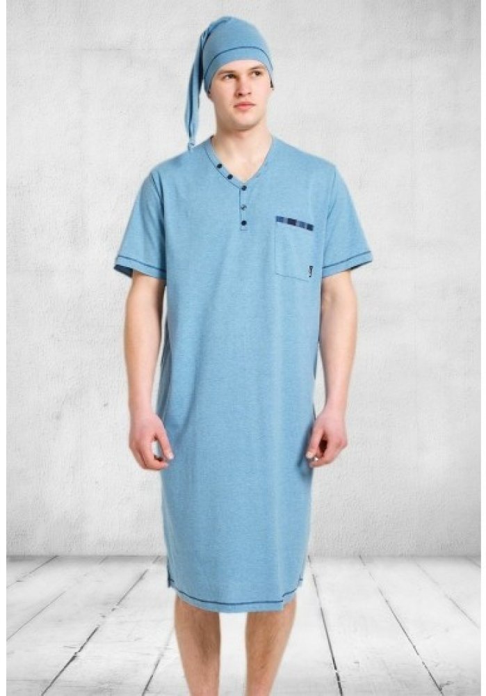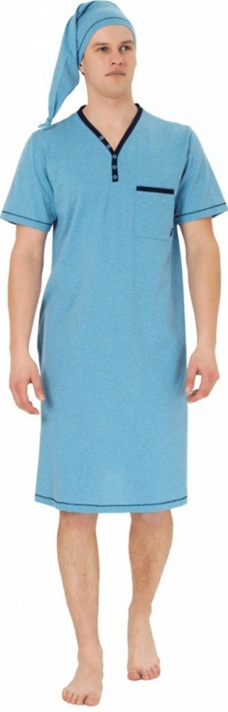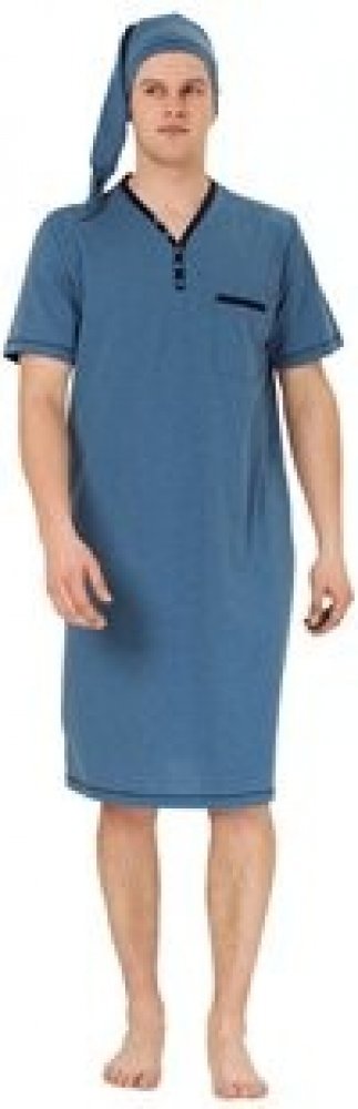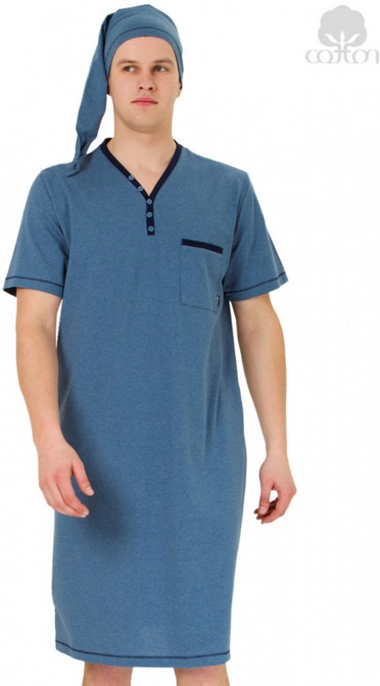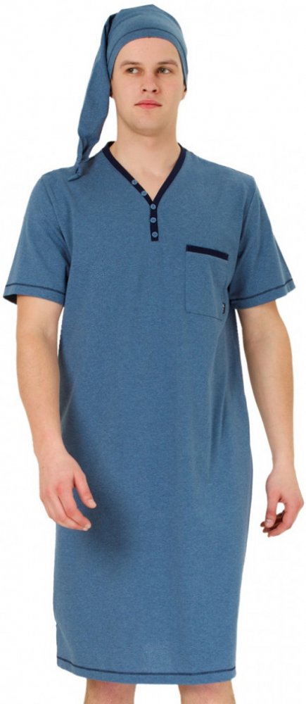 Bonifac noční košile krátký rukáv s čepičkou jeans