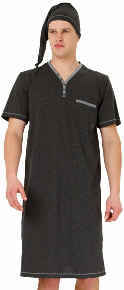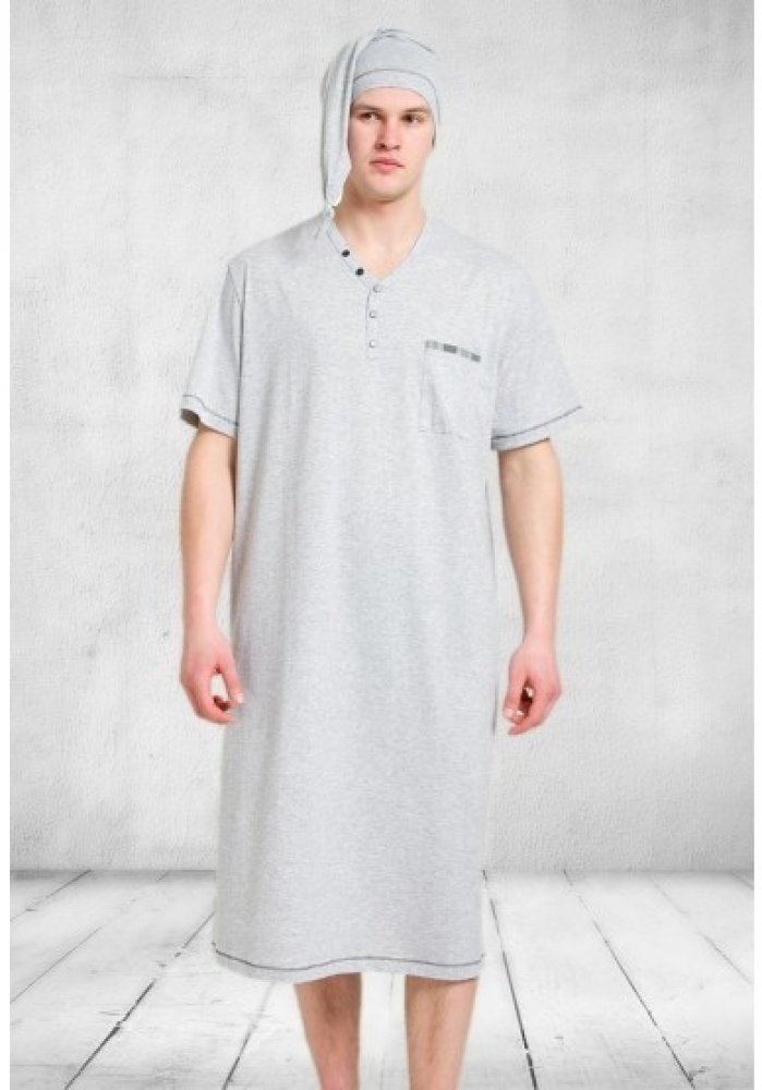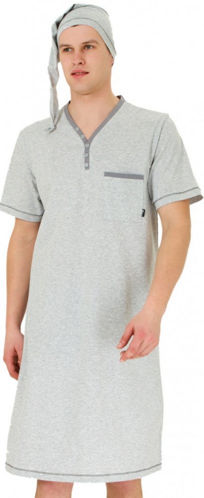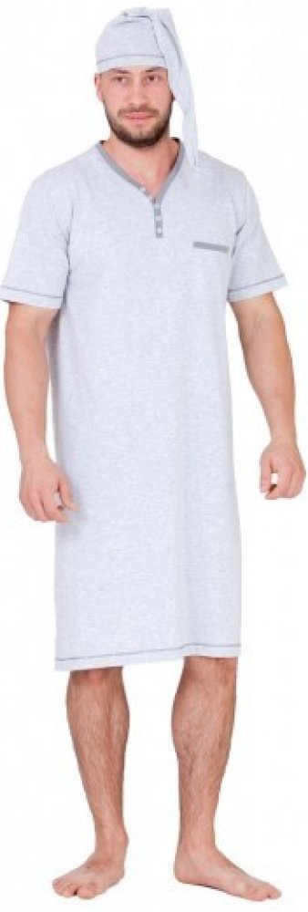 Bonifac pánská noční košile krátký rukáv s čepičkou šedá