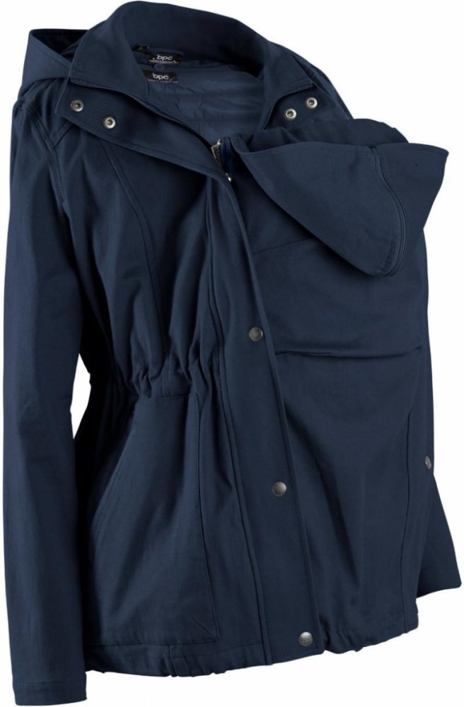 Tmavě modrá bunda z bavlněného materiálu je ideální na jaro a podzim ale i na letní chladnější večery. Skvěle se přizpůsobí rostoucímu bříšku nejen díky postranním zipům, ale také díky gumičkám, které najdete pod prsy a ve spodním lemu bundy. Pomocí nich bundu vypasujete podle svých proporcí a budete je povolovat či utahovat podle vašich potřeb. Díky této variabilitě pojme bunda bez problému bříšk...