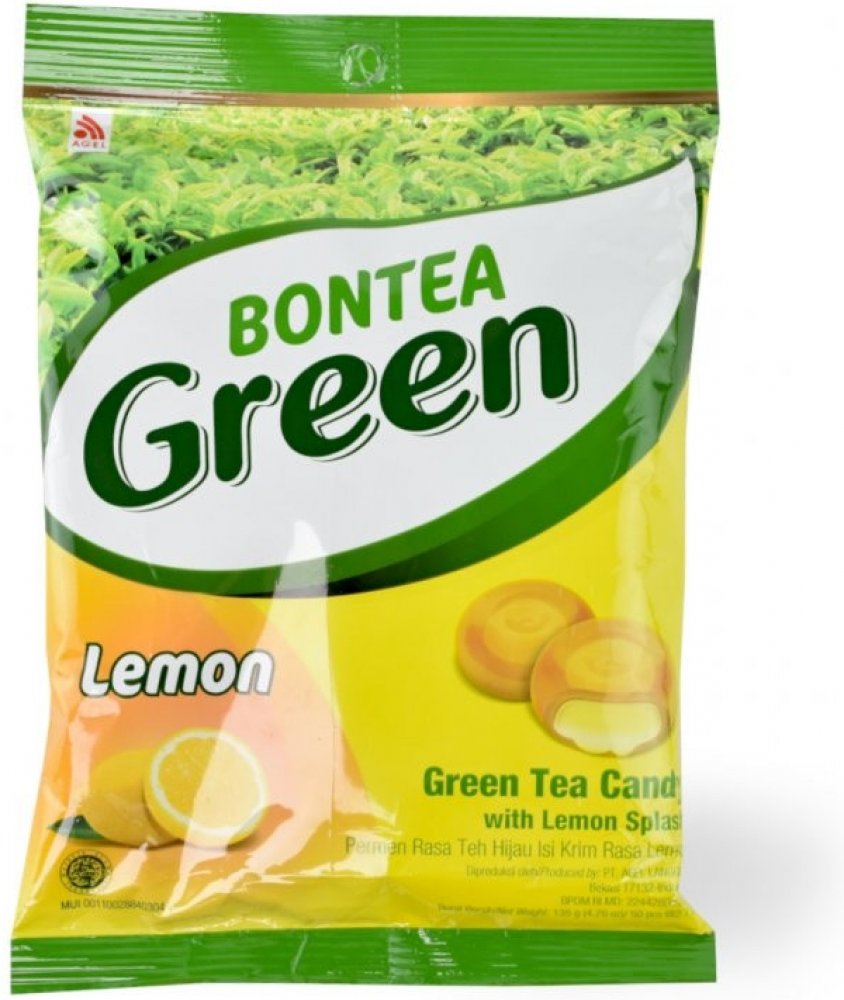 glukóza 55,74%, cukr 41,59%, rostlinný olej 0,66%, extrakt ze zeleného čaje 0,62%, regulátor kyselosti kyselina mléčná 0,44%, přírodně identické aroma zeleného čaje 0,31%, přírodně identické aroma citronu 0,21%, citronový extrakt 0,15%, emulgovaný sojový lecitin 0,13%, sůl 0,13%, mentol 0,01%