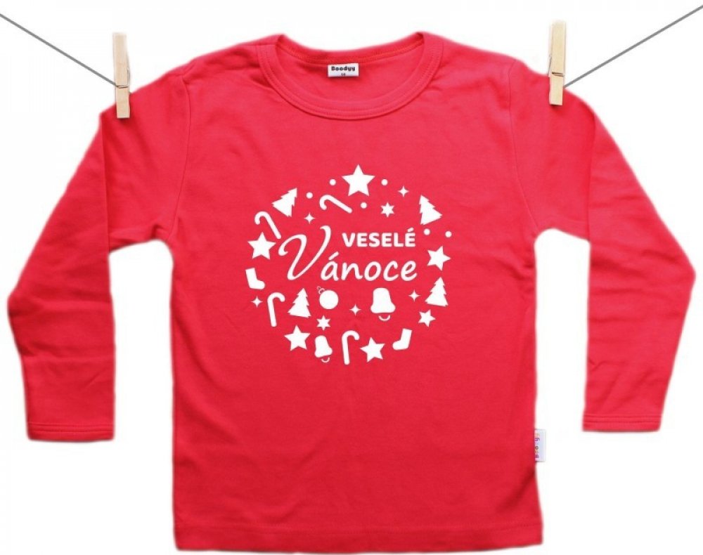 Boodyy červená tričko s dlouhým rukávem Veselé Vánoce