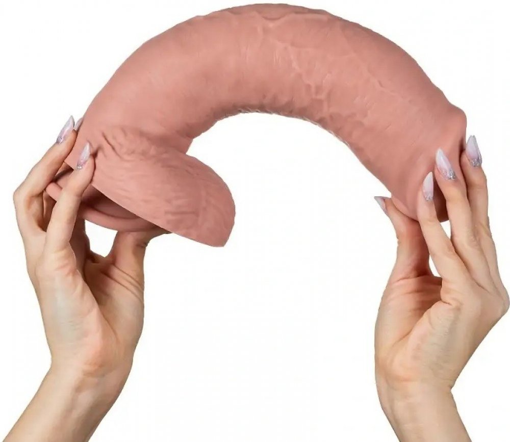 Nadprůměrná velikost, skvělé realistické zpracování a prvotřídní materiál. To vše se spojilo v tomto XXL dildu, které je vyrobené z tekutého silikonu. Když se ho dotknete, jako byste se dotýkali opravdového penisu.