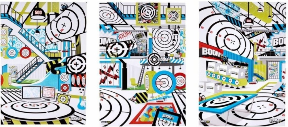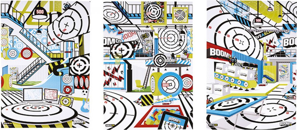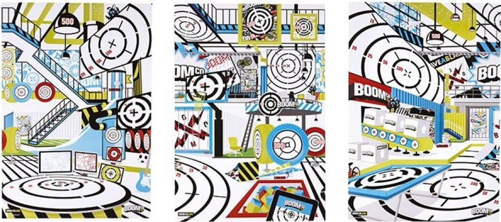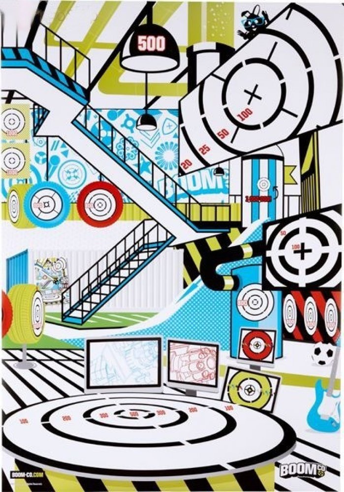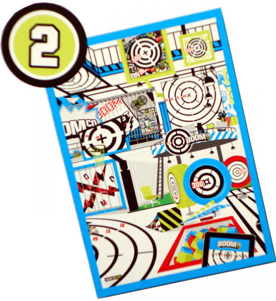 Bojové terče Smart Stick jsou perfektní pro střelbu na terč. Každý z těchto obrovských terčů o velikosti plakátu (69 cm x 99 cm) zavede kluky do BOOMco., aby objevili svět napětí a překvapení. Na výběr jsou 3 provedení. Každý plakát představuje snímek uvnitř BOOMco., který využije jedinečných výhod naší pistole (jednoranná, rychlá palba na menší vzdálenost, umění střílet na extrémní vzdálenost a čisté ničení). Celý povrch terčů je vyrobený ze speciálního papíru Smart Stick, který zajistí, že střely zůstanou na terčích přichycené! Bojový terč bude mít zabudovanou hru s bodovacími zónami a překvapivé prvky k zacílení, které určitě pobaví i přinesou napětí. Nasbírej je všechny a pak můžeš každou scénu pověsit na zeď a vytvořit si svět BOOMco.