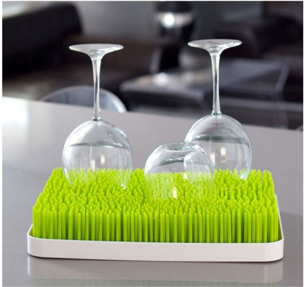 Nový odkapávač do kuchyně, který vypadá skvěle v každém interiéru. Snadno tak budete sušit láhve i dudlíky. Zelené lamely vaše křehké nádobí pevně a bezpečně udrží a zároveň je zaručen přívod vzduchu, takže nádobí bude rychle suché a voňavé. Zelená „tráva“ drží předměty ve svislé poloze a je ideální pro sušení kuchyňských potřeb všech tvarů a velikostí.