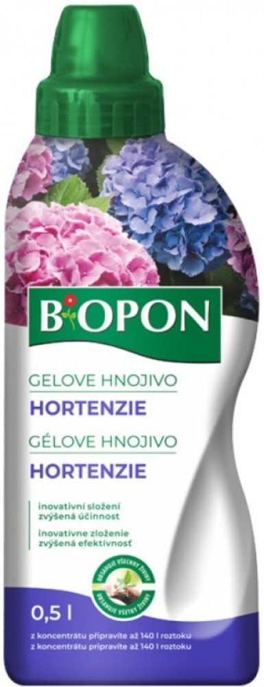 Mimořádně účinné minerální hnojivo na všechny druhy hortenzií. Při pravidelném používání podporuje tvorbu poupat a zajišťuje dlouhodobé a bohaté kvetení s krásnými barvami květů. Hnojivo v hutné gelové konzistenci, které je rozpustné ve vodě, díky tomu jsou živiny z hnojiva pro rostliny velmi dobře vstřebatelné.