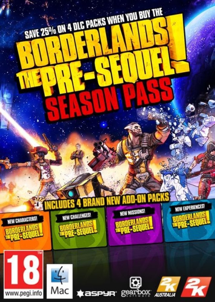 Prodlužte si trvání měsíčního masakru s kupónem Borderlands: Pre-Sequel Season Pass, jenž přináší nové postavy, výzvy, mise a další bonusy: