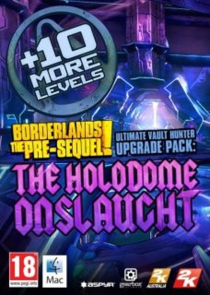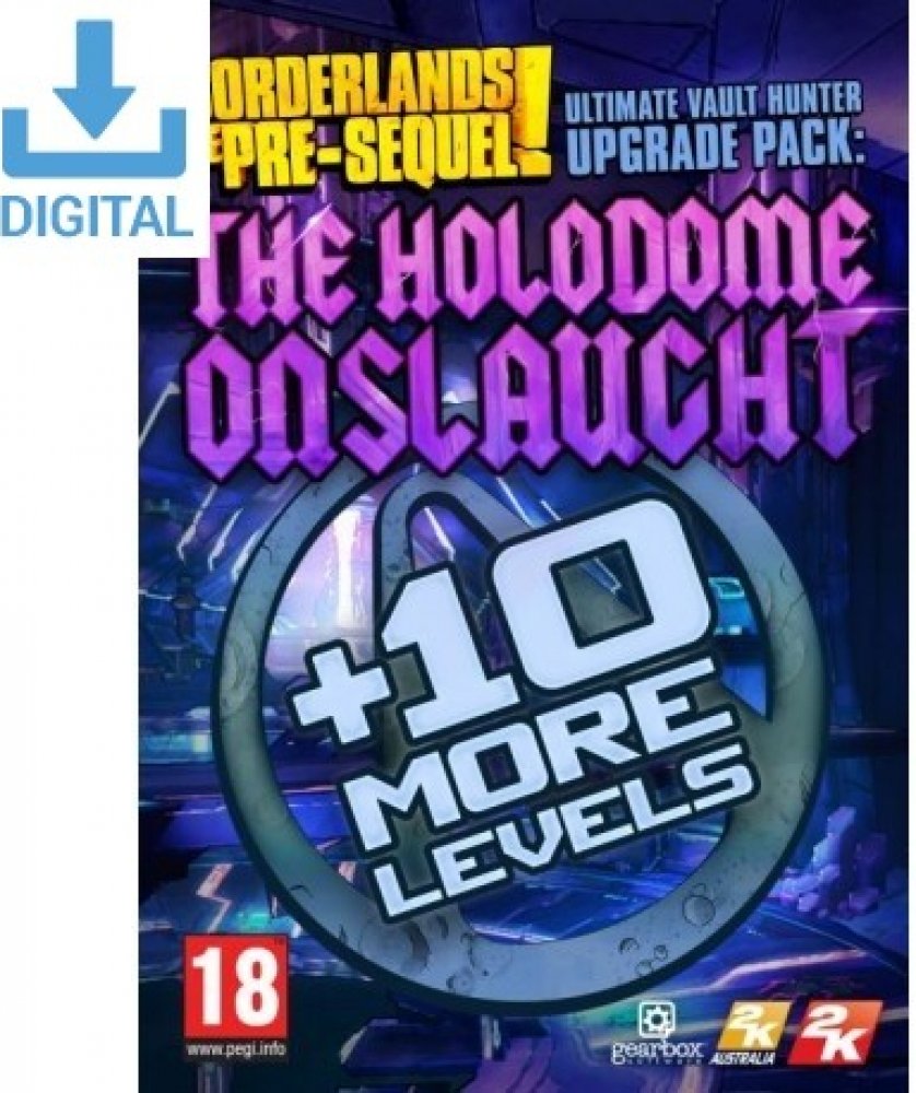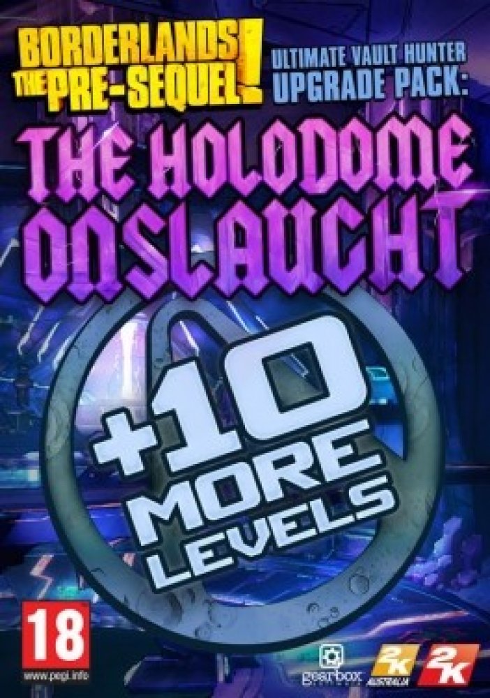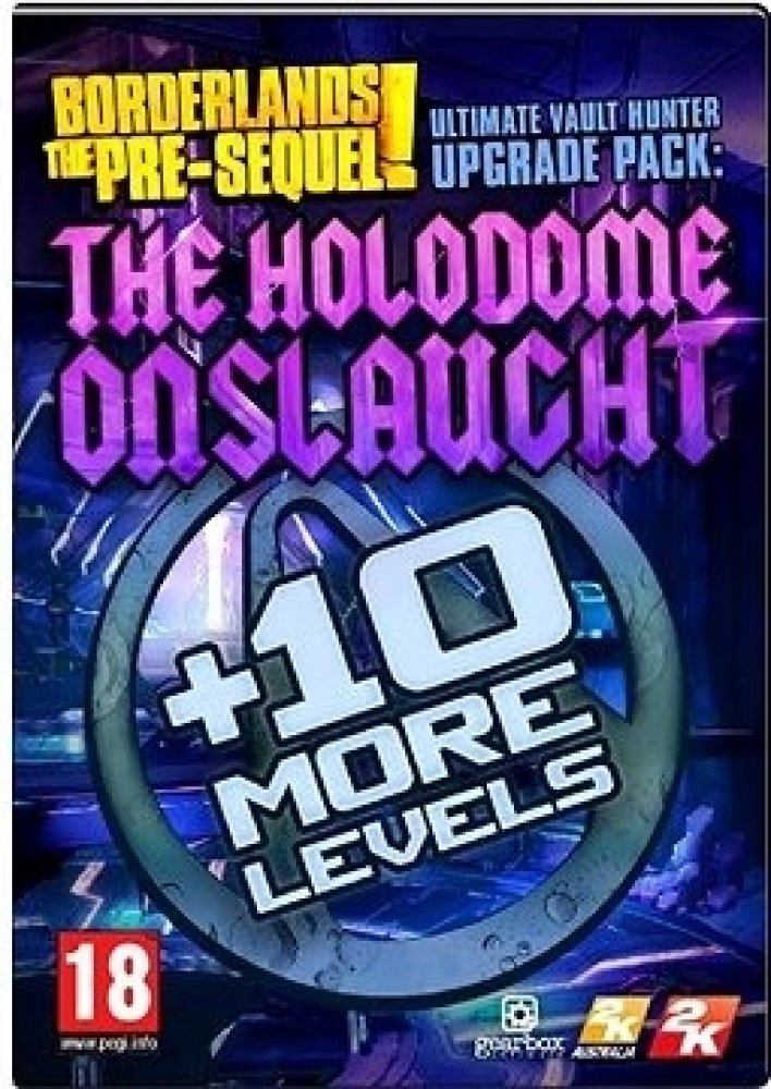 Příběh tohoto dodatečného rozšíření začíná ve chvíli, kdy se lovci pokladů Axton a Gaige vydávají do The Holodome Onslaught – nové arény výzev, v nichž hráči bojují proti vlnám úžasných nepřátel a bossů. Zatímco se zkušení lovci pokladů přidávají k ostatním na velitelství Crimson Raiders a seznamují se s nejnovějšími událostmi, hráči se musí střetnout s těmi nejdrsnějšími padouchy a získat tak úžasné nové zbraně, vybavení, hlavy a skiny! Jako bonus obsahuje toto rozšíření také balík Ultimate Vault Hunter Upgrade Pack, který zvyšuje strop zkušeností postavy o 10 úrovní a umožňuje získat 10 dalších bodů schopností! © 2014 IPerion LLC. Vydáno a distribuováno společností 2K. Gearbox a Borderlands, a loga Gearbox Software a Borderlands jsou registrovanými ochrannými známkami v USA a jinýc zemích, všechny využívané s laskavým svolením Gearbox Software, LLC. 2K a lgo 2K jsou ochranné známky 2K USA a jiných zemích. Všechny ostatní ochranné známky jsou majetkem jejich výhradních vlastníků. Všechna práva vyhrazena. Use of this product requires agreement to the following third party end user license agreement: http://www.take2games.com/eula/