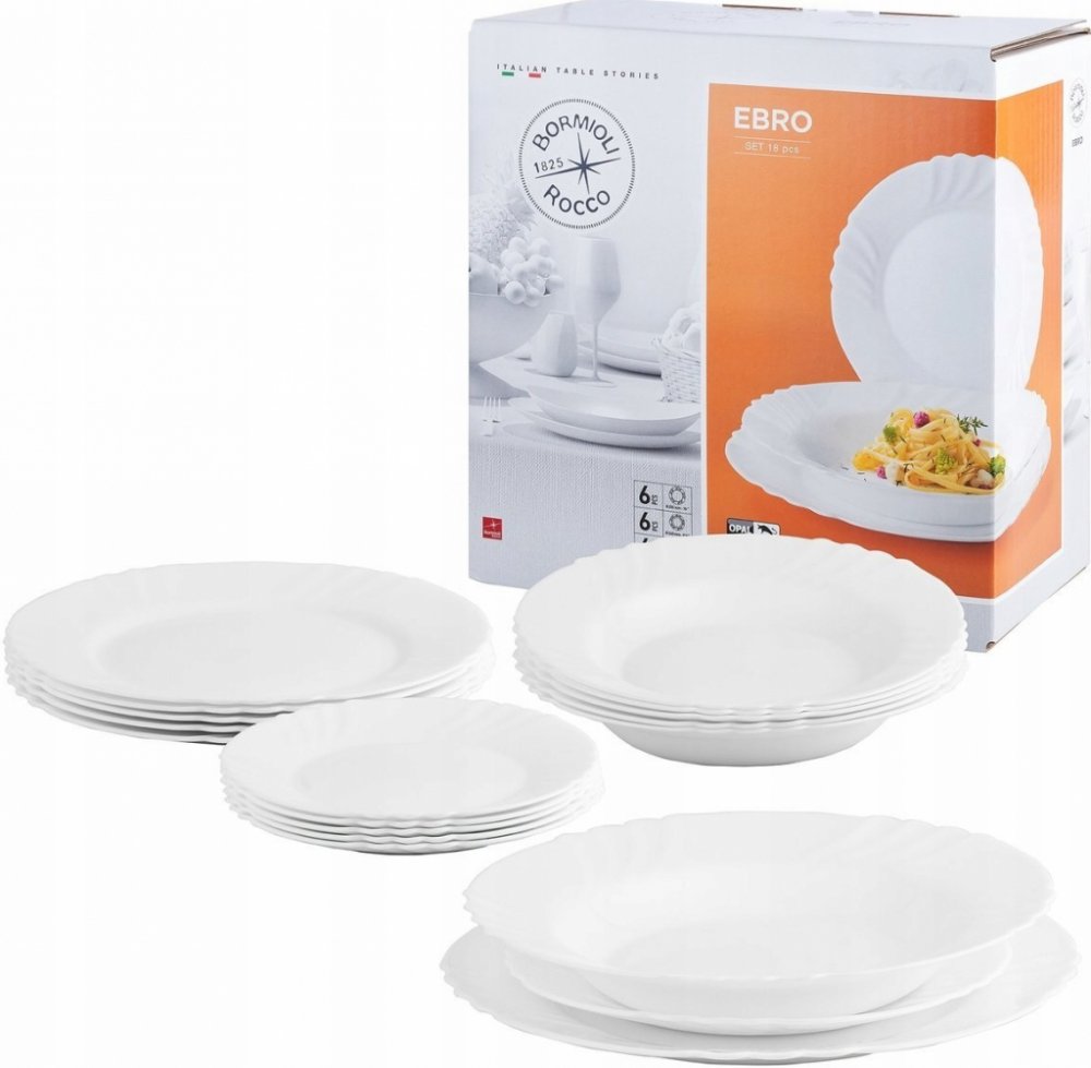 Dejte svému stolování nádech elegantního a kultivovaného stylu. Tradiční jídelní sada Ebro v bílém provedení obsahuje vše potřebné k prostření stolu. Díky čistým tvarům a klasickém bílém provedení bude nestárnoucím doplňkem vaší kuchyně.Sada je vyrobena z opálového skla - tvrzené sklo, které je 1000x odolnější a trvanlivější než klasické. Talíře ve třech velikostech vás navíc potěší svou praktičn...