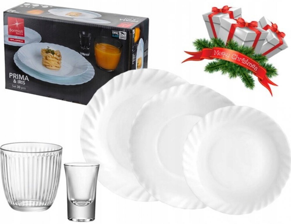 JÍDELNÍ SERVIS PRIMA BORMIOLI ROCCO KOMPLET 30EL SADA TALÍŘŮ A SKLENIČEKVlastnosti: