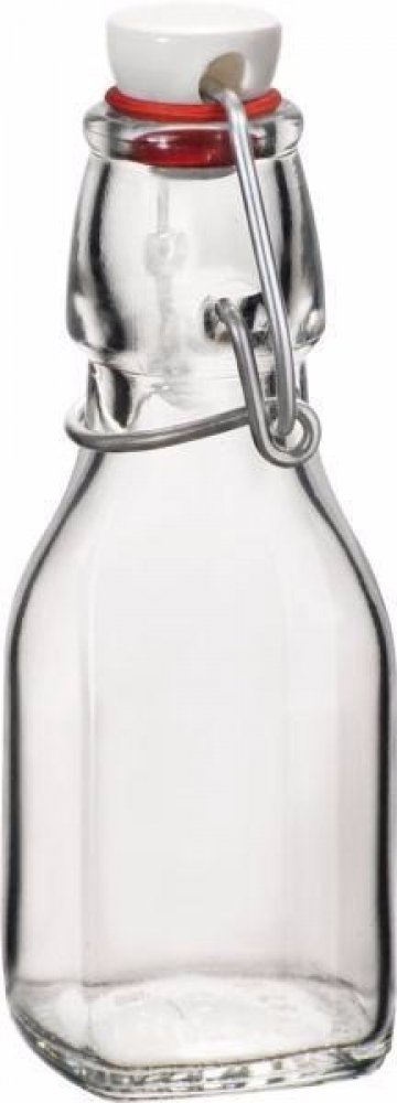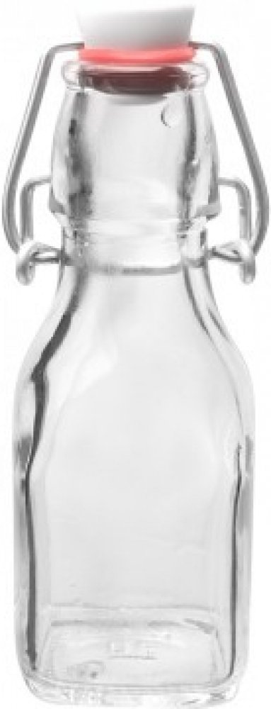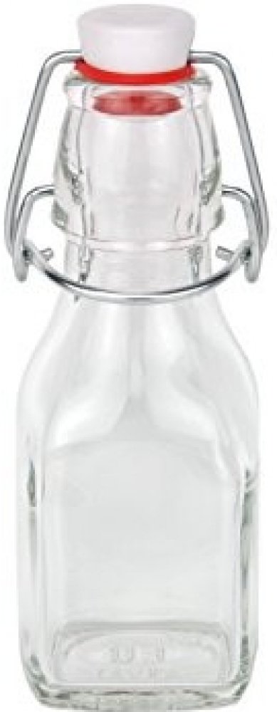Tato malá hranatá skleněná láhev poslouží k uchování a podávání domácího sirupu, bylinné tinktury, ovocné pálenky nebo medoviny. Její objem je 150 ml a má praktický uzávěr na klip se silikonovým těsněním.