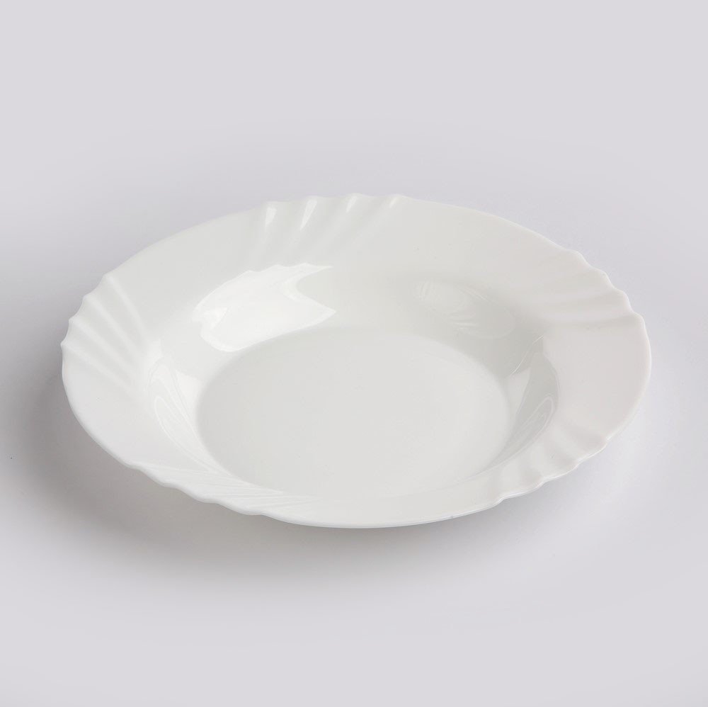 Hluboký talíř Ebro talíř je zhotoven z opálového skla, které je velmi odolné proti otlučení.