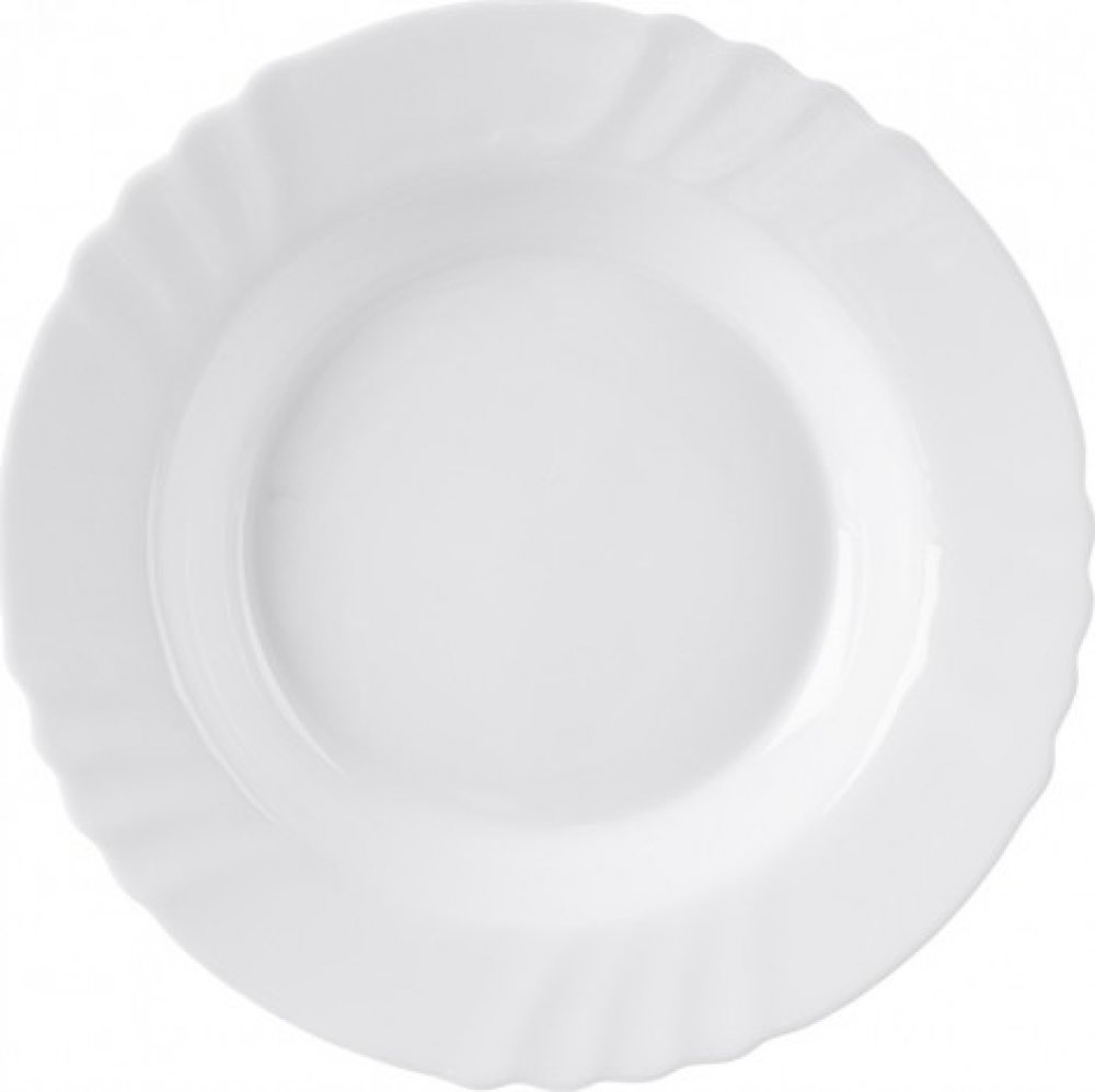 Hluboký talíř 23,5cm EBRO z tvrzeného skla, bílá barva. Talíř lze používat do mikrovlné trouby i do myčky na nádobí.Kolekci EBRO lze doplnit o šálky, misky a další talíře Nádobí je vysoce odolné proti poškrábání, otěru, tepelnému šoku, je neporézní a tudíž zabraňuje usazování bakterií, udržuje teplotu pokrmů, je 100% recyklovatelné.