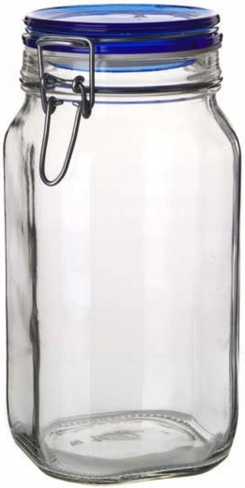 ✔ Hermetická skleněná nádoba 1,5 l, skleněná poklice, BORMIOLI Skleněná dóza FIDO Modrá