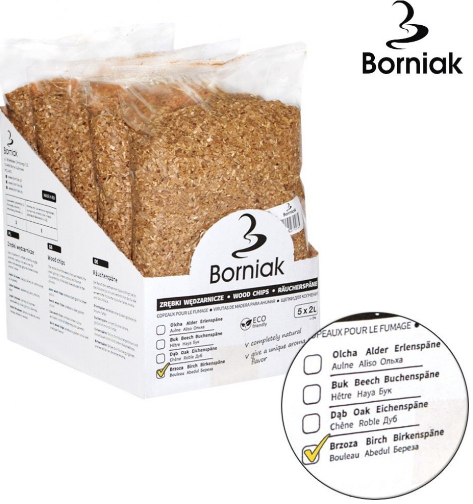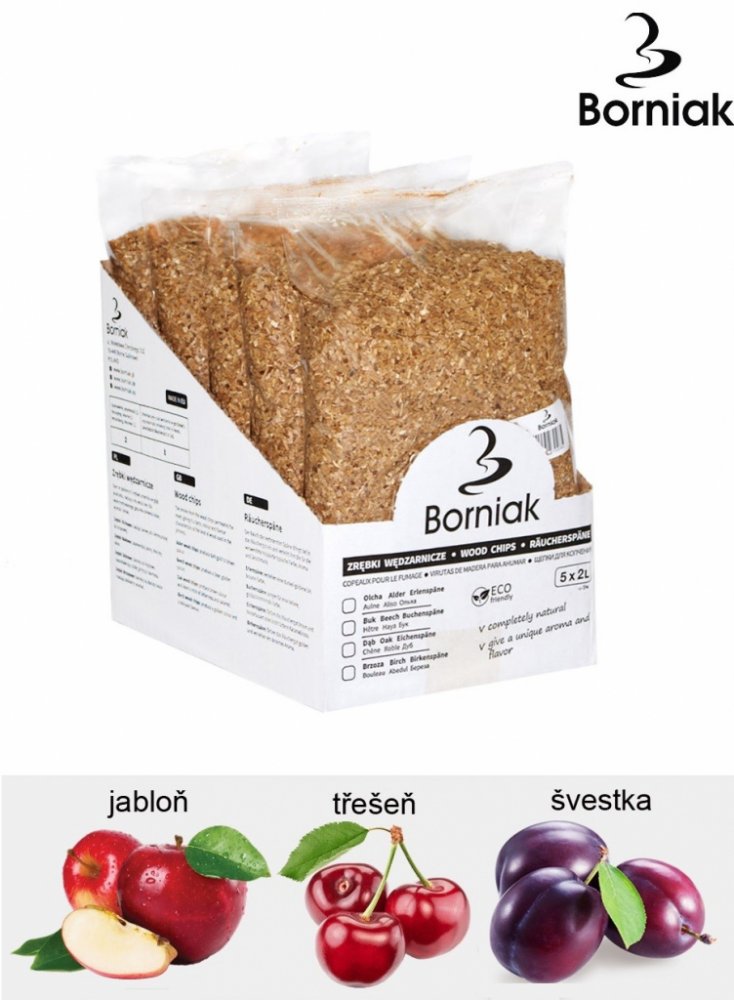 Štěpka Jablko je vhodná především k uzení drůbeže, jehněčího masa, zvěřiny a ryb v udírnách Borniak.