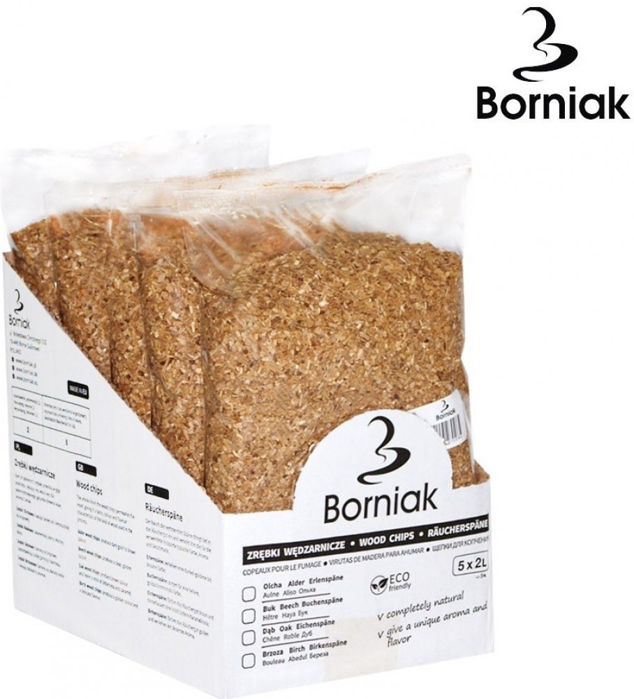 Javorové štěpky Nejvyšší kvality, zcela přírodní javorové štěpky. Používané k uzení všech druhů mas a ryb. Zaručí krásnou barvu, od tmavě zlaté až po hnědou. Jejich výjimečné aroma proniká hluboko do pokrmů. Štěpky značky Borniak představují nejvyšší kvalitu - jsou bez nečistot, mají správnou granulaci, příslušnou vlhkost a v důsledku vysokou kouřotvornost. Náš výrobek byl pečlivě vybrán a připraven z nejlepšího dřeva. Uzené výrobky připravené na našich štěpkách se vyznačují stabilní barvou a dokonalou, přírodní chutí. Štěpka Druhy uzenářských štěpek má zásadní vliv na chuť, vůni a barvu výrobků, které udíme. Jsou jako koření - v závislosti na druhu dřeva, z jakého byly vyrobeny, se jedny hodí spíše k rybám, jiné k vepřovému a další pak k drůbeži. Největší zábavou je mísení různých štěpek, díky čemuž vytváříme vlastní receptury. Pamatujme však na jedno - musíme mít jistotu, že spalované piliny jsou zcela přírodní - bez chemických příměsí, prachu a veškerých nečistot.