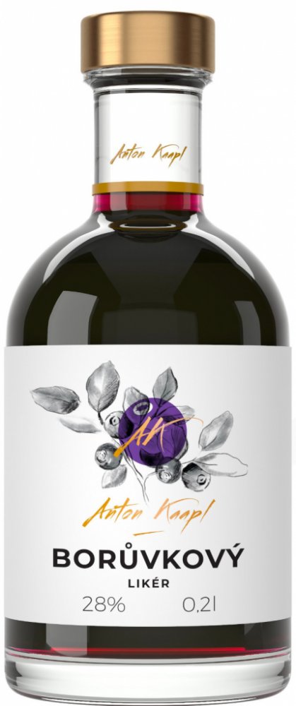 Borůvkový likér 28% od Anton Kaapl je ovocný likér vyráběný tradiční metodou macerace a lisování lesních borůvek, které jsou ručně sbírané v panenské přírodě Novohradských hor. Do ovocného destilátu se přidává meduňka lékařská, vanilkové lusky z Madagaskaru a kyselina citrónová, přičemž likér je doslazován cukrem. Výrobní proces neobsahuje žádná umělá barviva ani aromata – jde pouze o čistou přírodu. Pro ředění se používá demineralizovaná voda ze 102 metrů hlubokého vrtu v klikovském souvrství Třeboňské pánve, což zaručuje jedinečnou jemnost výsledného nápoje. Každá lahev obsahuje minimálně 25 % poctivě vylisované borůvkové šťávy, což podtrhuje výraznou ovocnou chuť a vytváří typický jemný zákal likéru. Tento produkt je oblíbený mezi znalci ovocných destilátů a lze ho podávat samostatně nebo využít jako zajímavou ingredienci do koktejlů.