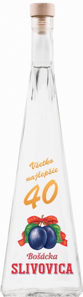 Bošácká Slivovice Ihlan 40tka má 52 % obsahu alkoholu. Nachází se v dárkové láhvi ve tvaru jehlanu, která je vhodné k dožitému jubileu 40 let.