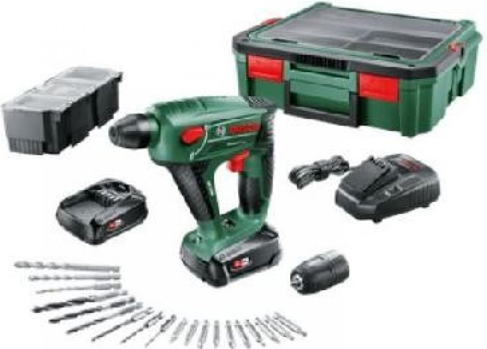 Sada kombinovaného kladiva s příslušenstvím, baterií, nabíječky a kufru