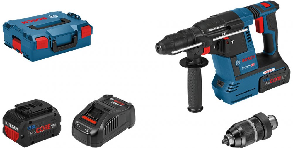 Aku vrtací kladivo GBH 18V-26F od značky Bosch Professional je špičkovým nástrojem v segmentu akumulátorových vrtacích kladiv Bosch SDS plus, ideální pro každodenní použití. Je určené pro vrtání s příklepem do betonu, zdiva a kamene, pro lehké sekací práce a pro vrtání bez příklepu do dřeva, kovu, keramiky či plastu. Využití najde také při šroubování pomocí rychloupínacího sklíčidla, které je součástí dodávky. Je kompatibilní s přídavným odsáváním prachu GDE 18V-16, které nabízí samostatné HEPA řešení pro maximální mobilitu. Kladivo je vybaveno funkcemi KickBack Control a Electronic Precision Control (EPC), které zajišťují lepší manipulaci a zvýšenou ochranu uživatele. Výkonný motor s energií nárazu 2,6 J přináší vysokou rychlost odstraňování materiálu. LED světlo vždy optimálně osvětlí pracoviště, zatímco indikátor stavu nabití baterie poskytuje přehled o zbývající kapacitě. Součástí dodávky je rychlonabíječka, dva 5,5Ah akumulátory, sklíčidlo SDS Plus a 13mm rychlovýměnné sklíčidlo, 210mm hloubkový doraz, kufr L-BOXX a kompatibilní vložka. Nakupte jeden nebo více 18V produktů Bosch Professional v rámci jednoho nákupu a získejte odměnu. Při nákupu těchto produktů v hodnotě vyšší než 6 048 Kč můžete získat akumulátor GBA 18 V 4 Ah nebo reproduktor GPB 18V-1 C. Při nákupu v hodnotě vyšší než 10 525 Kč můžete získat starter set ProCORE18V (1× 4 Ah + GAL 18V-40) nebo aku úhlovou brusku GWS 18V-8. Při nákupu v hodnotě vyšší než 15 124 Kč můžete získat starter set ProCORE18V (1× 4 Ah + 1× 5,5 Ah + GAL 1880 CV). Více informací na prodejnách BAUHAUS.