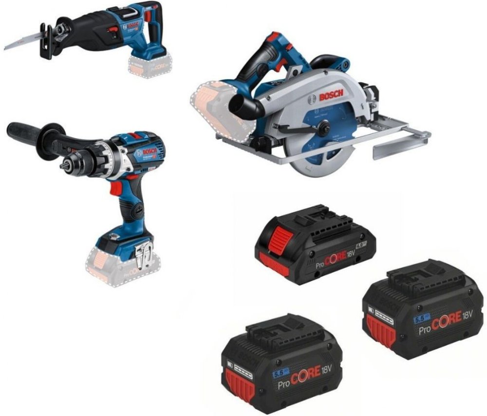 Akumulátorový kombinovaný šroubovák GSB 18V-110 C Mimořádně výkonný a robustní vrtací šroubovák v kategorii 18 V – s bezuhlíkovým motorem a funkcí příklepového vrtání Díky maximálnímu krouticímu momentu 110 Nm a bezuhlíkovému motoru je nářadí mimořádně silné S celokovovým sklíčidlem pro dlouhou trvanlivost je příklepový vrtací šroubovák schopný zvládat i ty nejnáročnější práce na staveništi Funkce Bluetooth Connectivity pro přímé připojení k chytrému telefonu pro další ovládání nářadí Akumulátorová okružní pila BITURBO GKS 18V-68 GC Lepší než pila napájená ze sítě - nejlepší výkon s plnou flexibilitou Maximální akumulátorový řezný výkon: zcela se vyrovná síťovým 1 800 W díky nové bezuhlíkové technologii BITURBO Brushless Mimořádná ergonomie díky konceptu nové přídavné rukojeti, která zajišťuje dokonalou kontrolu ve všech polohách Dokonalá jednoduchost, díky pohodlnému a intuitivnímu nastavení hloubky Akumulátorová přímočará pila BITURBO GSA 18V-28 Rychlé demoliční práce s větší svobodou a menší únavou Bezuhlíková technologie zaručuje mimořádný akumulátorový řezný výkon – srovnatelný s výkonem 1 100W síťového nářadí Funkce nacvaknutí bez nástrojů zaručuje snadné nasazení a sejmutí kotouče jednou rukou. Menší únava při práci v jakékoli poloze díky dokonalému poměru výkonu a hmotnosti Obsah dodávky Akumulátorový kombinovaný šroubovák GSB 18V-110 C Akumulátorová okružní pila BITURBO GKS 18V-68 GC Akumulátorová přímočará pila BITURBO GSA 18V-28 3x akumulátor (18v 1x 4.0Ah 2x 5.5Ah)