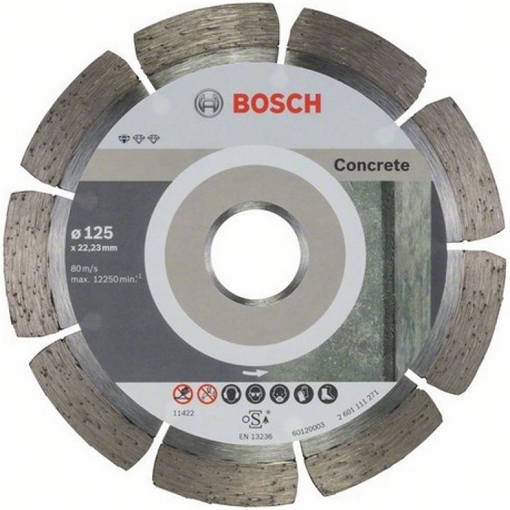 Diamantový řezný kotouč Standard for Concrete umožňuje spolehlivé řezání betonu. Jeho optimalizovaná diamantová struktura zajišťuje solidní výsledky díky vysokým standardům kvality kotouče. Konzistentně vysoký standard kvality diamantů zajišťuje centrum kompetencí firmy Bosch ve Švýcarsku. Tento kotouč používejte k řezání betonu.