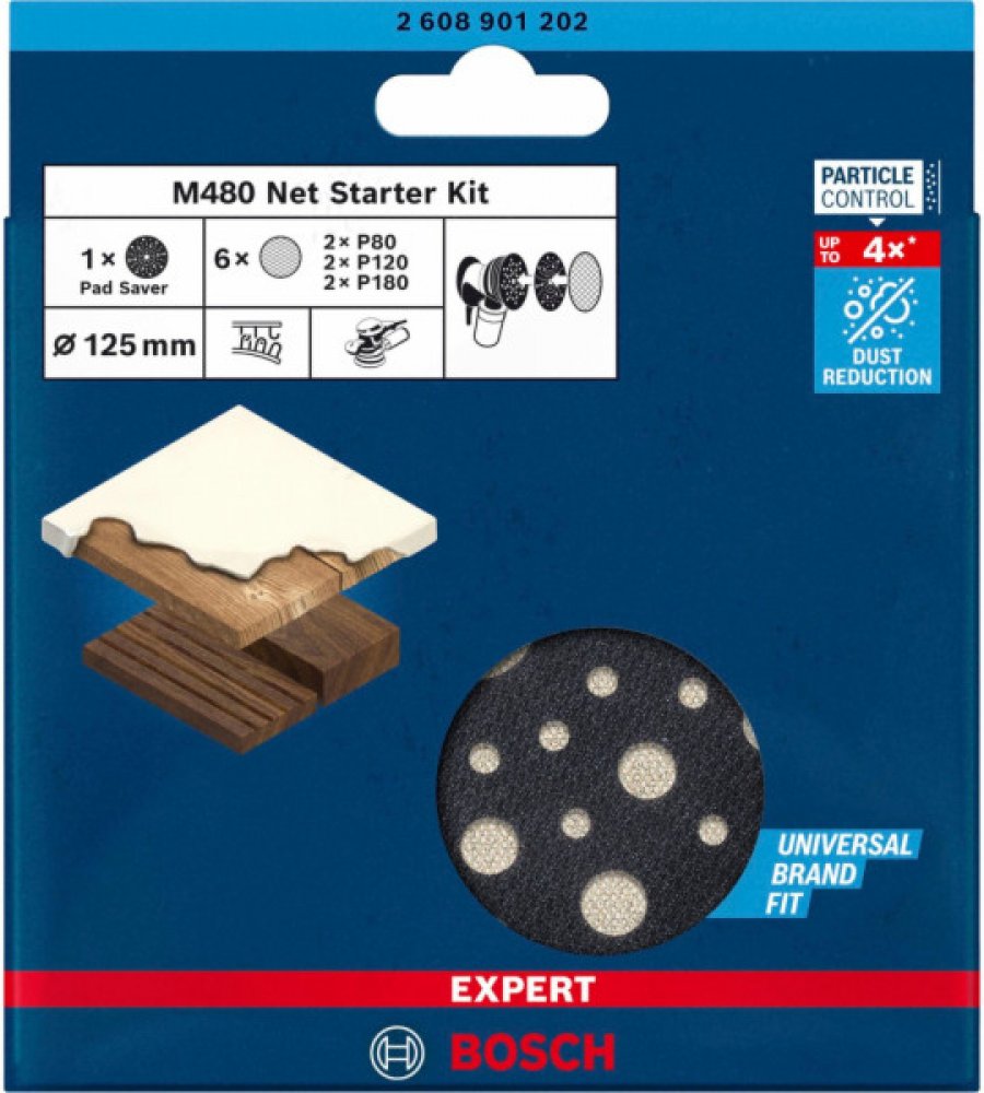 Použití se šetřícími podložkami pro pokročilé snížení prašnosti a efektivní broušení dřeva, nátěrů a sádrokartonu.! Velkým nepřítelem broušení je prach. Zanáší brusný papír a snižuje jeho efektivitu. Zapráší všechno v místnosti a šíří se i dál do domu. Proto jsme přišli s technologií Bosch Particle Control a posunuli jsme snižování prašnosti na novou úroveň. Snížení prašnosti při broušení není snadné, ale našli jsme řešení. Tato brusná mřížka Bosch EXPERT M480 využívá naši technologii Particle Control, která snižuje prašnost na minimum.