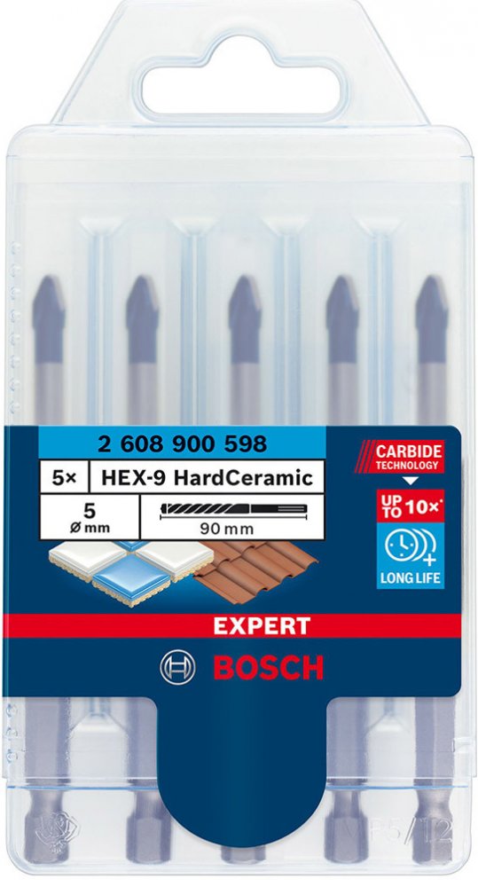Sada vrtáků EXPERT od značky Bosch Professional vydrží až 10krát déle než standardní vrták do dlaždic. Vzhledem k tomu, že obklady jsou stále větší a tvrdší, je vrtání otvorů stále víc obtížnější pomocí vrtáku na dlaždice. Z tohoto důvodu společnost Bosch vyvinula vrták Expert Hard Ceramic. S tímto vrtákem je možné vrtat do tvrdé keramiky nasucho. Pro tento speciální vrták na tvrdou keramiku se vy...