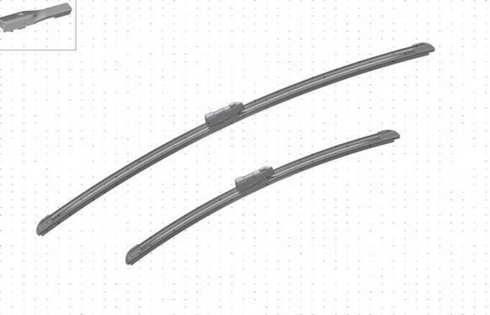 Bosch 650+450 mm Multi-clip ploché přední intenzivní déšť a vysoké rychlosti 2 ks Alfa Romeo, Audi, Cupra, Kia, Seat, Škoda, Volkswagen, VW kovové rameno