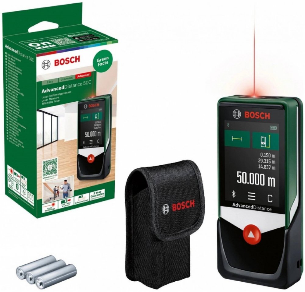 Digitální laserový dálkoměr (Metr) Bosch AdvancedDistance 50 C Chytřejší způsob měření Přesné laserové měření až do vzdálenosti 50 m Ovládací prvky na dotykovém vysoce kvalitním barevném displeji pro optimální ovládání a čitelnost Integrované standardní měřicí funkce včetně nepřímého měření Animované podrobné pokyny ke každé funkci Připojení přes Bluetooth pro přenos výsledků do aplikace Bosch Nab...