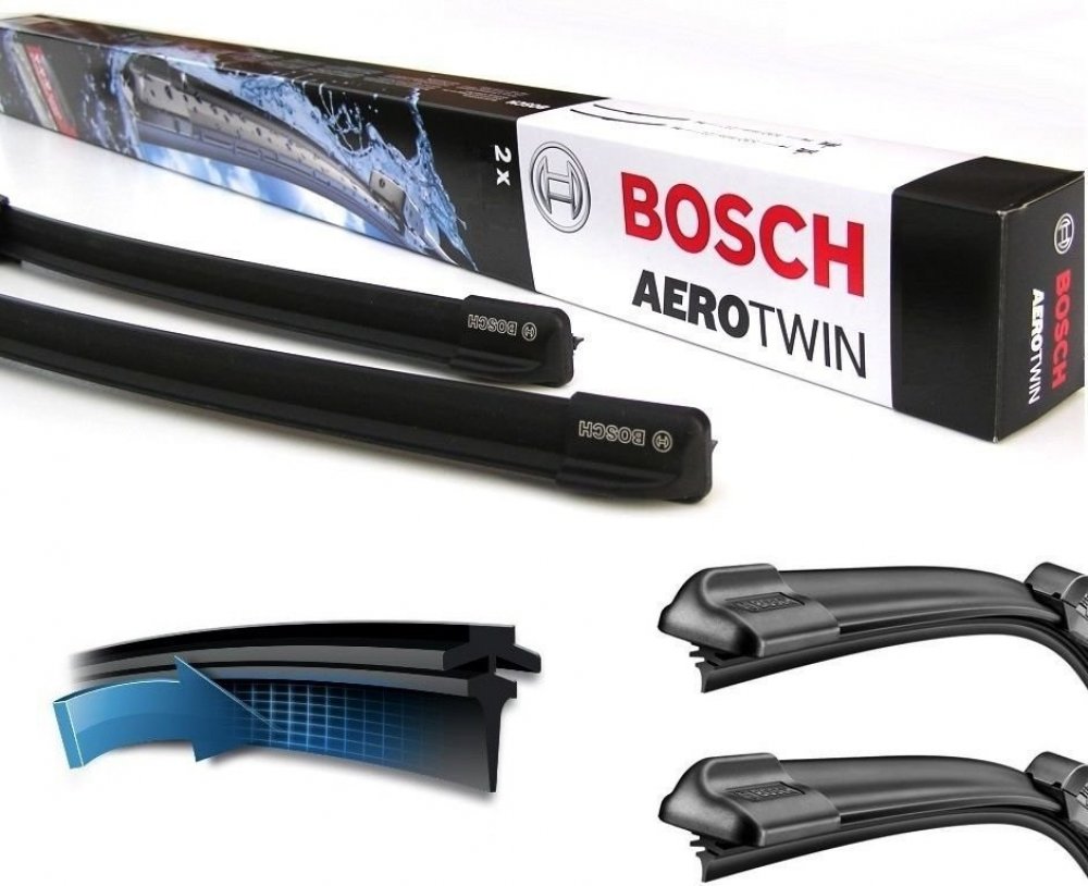 Vynikající výsledky stírání dosahují stěrače Bosch Aerotwin také na míru přizpůsobenou pružinovou lištu, která se dokáže optimálně tvarově přizpůsobit zaoblení předního skla. S takto dosaženým rovnoměrným přítlačným tlakem dosahují Aerotwin v každém bodě na předním skle perfektní stírací výkon. Aerodynamický profil kromě toho zajišťuje, aby se stěrače nezvedaly ani při vysokých rychlostech jízdy a kromě toho aby způsobovaly co nejnižší hluk způsobený proudícím vzduchem. Pryž stírací lišty s flexibilním hřbetem, s hranou odolnou vůči opotřebení a s potahem zaručujícím lehký chod, je velmi náročně konstruována. Při použití vysoce odolné pryže a za dodržení rovnoměrného rozložení na předním skle dosahují stěrače Bosch Aerotwin mimořádně dlouhé životnosti.