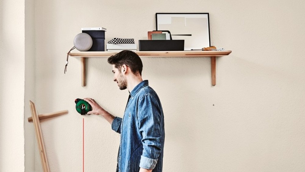 Díky čárovému laseru si můžete pověsit své oblíbené předměty bez pomoci v mžiku oka. Čárový laser s integrovaným měřícím pásmem pro snadné věšení, vyrovnávání a měření.