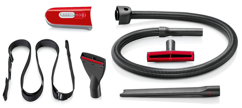 - Příslušenství ProAnimal Kit: skládá se z přídavného, krátkého držadla, připevnitelným adaptérem s hadicí a popruhem, hubice na polstrování, štěrbinová hubice a hubice na sedadla v autě - ideální pro čištění polstrování, štěrbin a špatně dostupných míst
