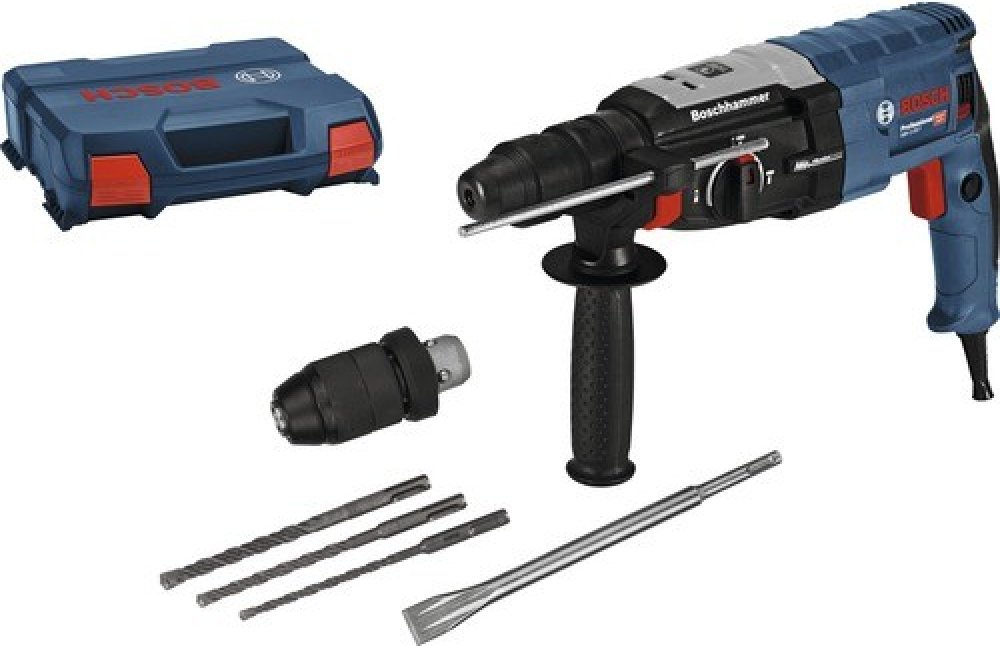 Vrtací kladivo GBH 2-28 F od značky Bosch Professional zaujme silným výkonem a vysokou energií příklepu. Ve verzi F lze sklíčidlo SDS-Plus demontovat pouhým pohybem ruky a lze jej nahradit rychlosklíčidlem. To zvyšuje všestrannost vrtacího kladiva a umožňuje rozšířit možnosti jeho použití. Systém VibrationControl snižuje přenos vibrací na uživatele, což umožňuje pracovat déle a příjemněji. Vrtací kladivo má několik variant nastavení, takže se hodí k vrtání, vrtání s příklepem, ale také sekání. Při vrtání potom systém KickbackControl snižuje riziko poranění způsobeného náhlou reakcí nářadí při jeho případném zablokování. Rychlost vrtání můžete variabilně upravovat akceleračním spínačem, toto vrtací kladivo je navíc vybaveno přídavnou rukojetí a hloubkovým dorazem. V balení naleznete, kromě již zmíněného druhého sklíčidla, i tři další SDS+ vrtáky. Vše je uloženo v praktickém a odolném kufru L-Case.
