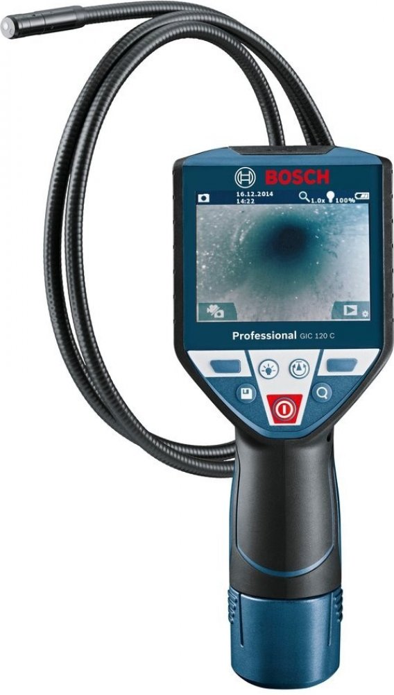 Možnost prodloužení záruky na 3 roky Akumulátorová monitorovací kamera Bosch GIC 120 C. Efektivní kontrola a dokumentace obtížně přístupných míst. Popis Akumulátorová monitorovací kamera Bosch GIC 120 C. Efektivní kontrola a dokumentace obtížně přístupných míst. Monitorovací kamera GIC 120 C Professional je ideální na kontrolu špatně přístupných míst a zaznamenávání výsledků. Funkce ‘Up is Up’™ otáčí a přizpůsobuje snímek na větší obrazovce, a zajišťuje tak optimální orientaci v prostoru. Pro vysoce kvalitní dokumentaci a rychlé ukládání je možné snímky a videa přenášet přímo přes mikro USB kabel. Technologie duálního zdroje napájení umožňuje použití s akumulátorem 12 V Li-ion nebo alkalickými bateriemi. Endoskopická kamera je perfektní pro mnoho kutilských prací, například při nahlížení do rozvodných skříní či potrubí, do dutin stěny, a při práci s hydraulickými systémy či při opravách automobilů. GIC 120 C Professional je vybaven technologií Quick Connector, která umožňuje rychlou a snadnou výměnu kabelu kamery a též uspořádané ukládání přístroje. Kompaktní konstrukce s ideální ergonomií zajišťuje to nejlepší ovládání v každé možné situaci. Kabel kamery o délce 120 cm s jasným LED světlem nabízí dostatečný dosah do úzkých prostorů a osvětlení tmavých míst pro jasný přehled. Výhody Funkce ‘Up is Up’™ otáčí a přizpůsobuje snímek na větší obrazovce, a zajišťuje tak optimální orientaci v prostoru. Přímý přenos snímků a videí přes kabel USB pro rychlé ukládání vysoce kvalitních záznamů kritických oblastí. Technologie s duálním zdrojem napájení umožňuje použití s akumulátorem 12 V Li-ion nebo běžnými alkalickými bateriemi.
