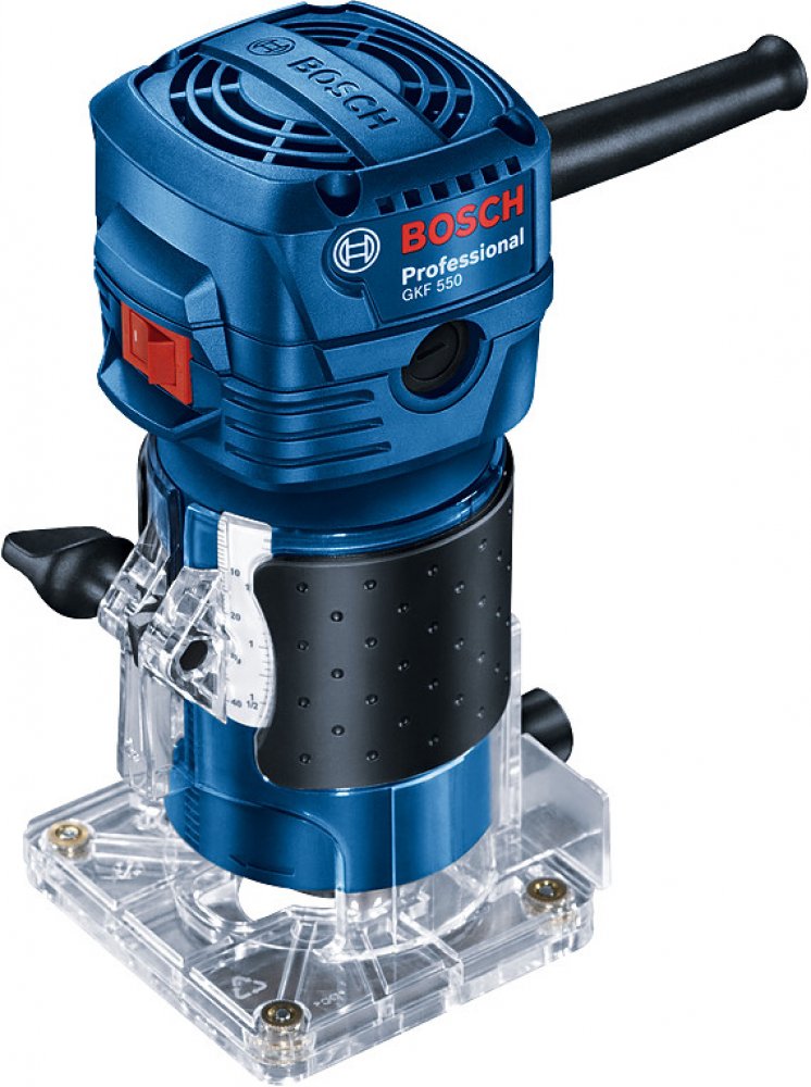 Měkká rukojeť a průhledný podstavec jsou dalšími výhodami profesionální ohraňovací frézky Bosch GKF 550. Průhledný podstavec je navržen tak, aby poskytoval maximální viditelnost opracovaného materiálu. Tato funkce umožňuje uživateli lépe sledovat proces ohraňování a zajistit precizní výsledek. Měkká rukojeť je dobře tvarovaná a poskytuje pohodlný úchop. Díky své ergonomické konstrukci a použití měkkého materiálu minimalizuje únavu ruky a zvyšuje komfort při dlouhodobém používání - bez nepříjemného tlaku a namáhání ruky.